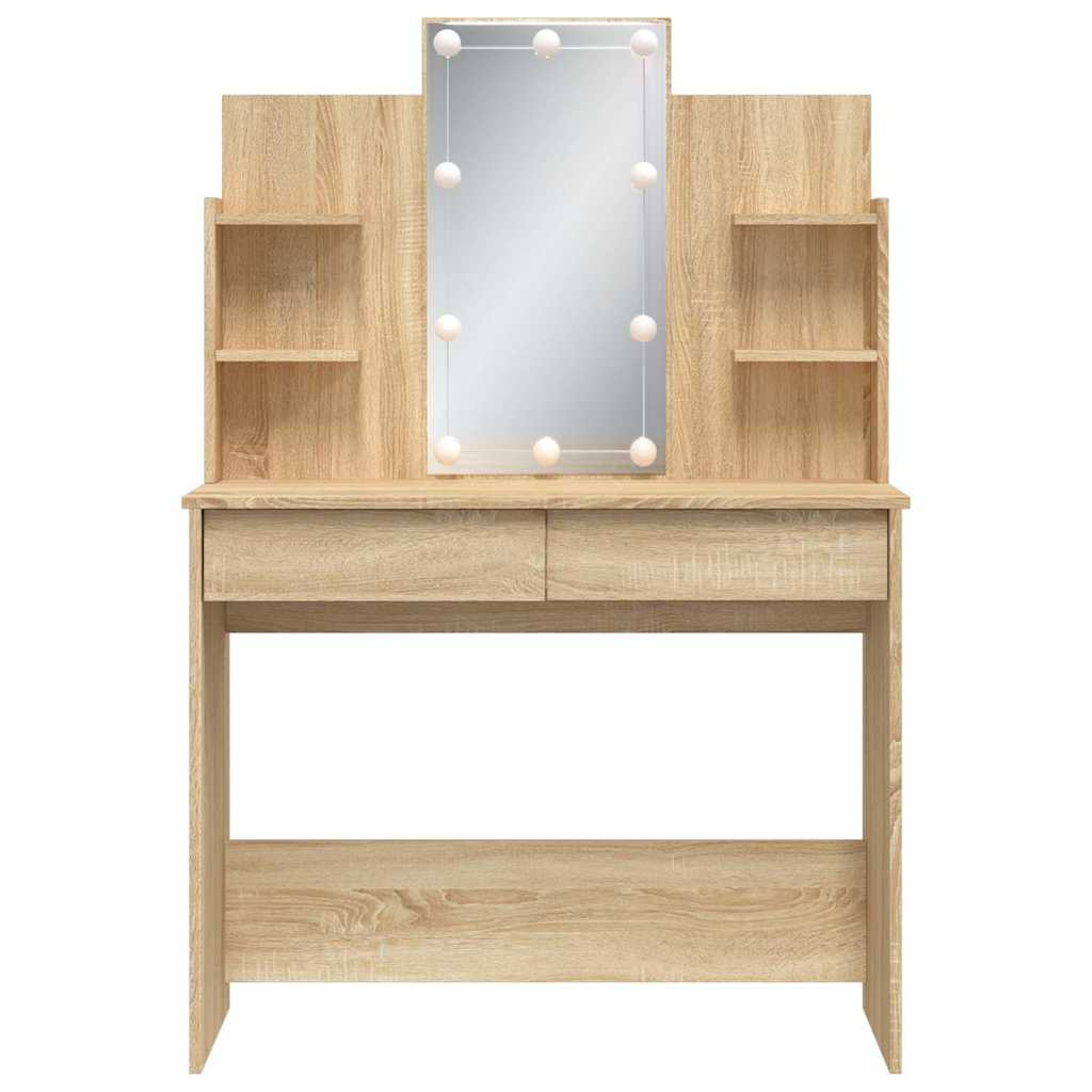 Az időtlen és kifinomult megjelenésű, tükörrel és LED-es világítással ellátott fésülködőasztal hálószobája berendezésének remek kiegészítője lehet, miközben kozmetikai eszközei mindig kéznél vannak! Stabil anyag: A szerelt fa kivételes minőségű, sima felületű, szilárd, stabil és ellenáll a nedvességnek. Ez a szerelt fából készült pipereasztal könnyen tisztítható.Bőséges tárolóhely: Ez a fésülködőasztal 2 fiókkal és 4 kis polccal lett ellátva, így bőséges helyet biztosít kozmetikai kellékei rendezett tárolásához.Hasznos tükör: A mellékelt gyönyörű tükör segít a sminkelésben, és elegánsabbá teszi a sminkasztalt.Állítható LED lámpák: Ezen az pipereasztalon a tükör körül LED lámpák találhatók. Könnyedén válthat 3 világos szín között (hideg, meleg és semleges), és beállíthatja a fényerőt a praktikus vezérlővel. Figyelem:A dőlés megakadályozása érdekében a terméket a mellékelt tartóelem segítségével rögzíteni kell a falhoz. Jó tudni:A termék USB-csatlakozóval rendelkezik, ám a hitelesített 5 V-os USB áramforrást a csomag nem tartalmazza. Ne használja ezt az elemet, ha valamelyik alkatrésze eltört, elszakadt vagy hiányzik. Ez a termék DC 5V-ról működik, de a tanúsított 5V-os USB-tápforrást nem tartalmazza. A magasabb feszültség túlmelegedést okozhat, ami a készülék károsodását, valamint a túlmelegedés és a tűz esetleges kockázatát okozhatja.