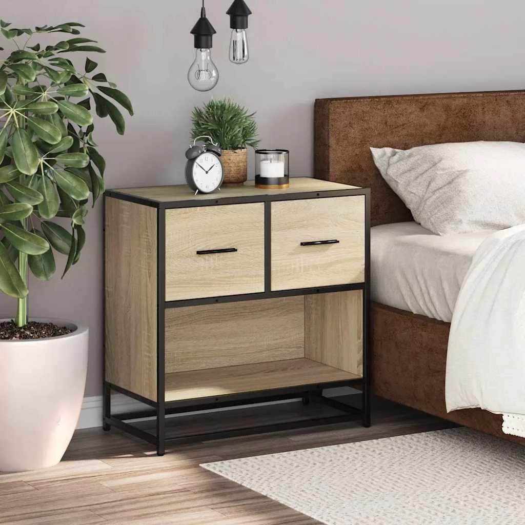 sonoma tölgy színű szerelt fa és fém éjjeliszekrény 60x31x60 cm