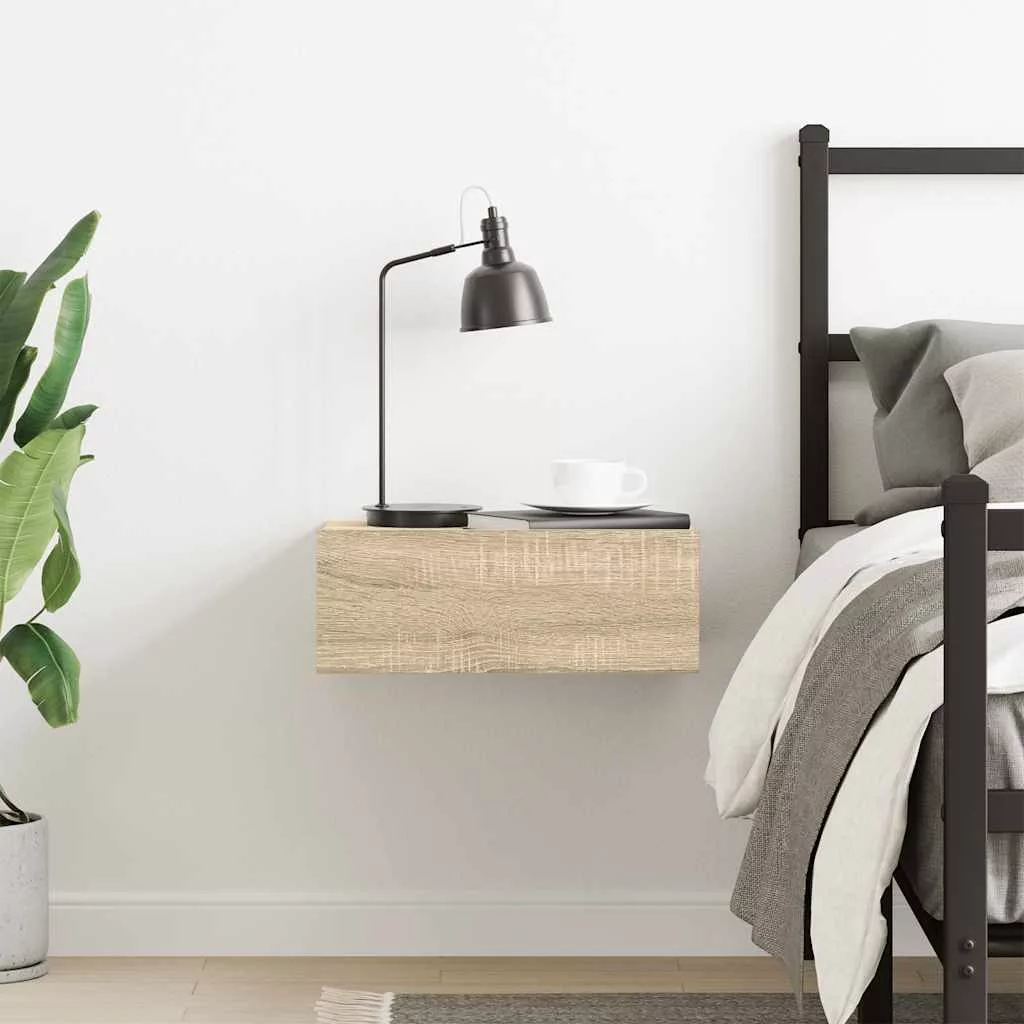 Letisztult, klasszikus dizájnjának köszönhetően ez a lebegő éjjeliszekrény otthona dekoratív és praktikus kiegészítője lesz. A prémium minőségű fából készült, falra szerelhető éjjeliszekrény erős, strapabíró és hosszú élettartamot biztosít. A szilárd felső lappal és beépített fiókkal kialakított fali polc bőséges tárolóhelyet kínál folyóiratai, könyvei, multimédiás eszközei és egyéb dekorációs tárgyai rendezett és elérhető közelségben tartásához. Ezenkívül a helytakarékos kompakt éjjeliszekrény ideális tárolási megoldást kínál bármilyen lakótérben, még a legkisebb helyiségekben is. Az éjjeliszekrény nedves ruhával könnyen tisztítható, és egyszerűen összeszerelhető a mellékelt szerelési tartozékokkal.