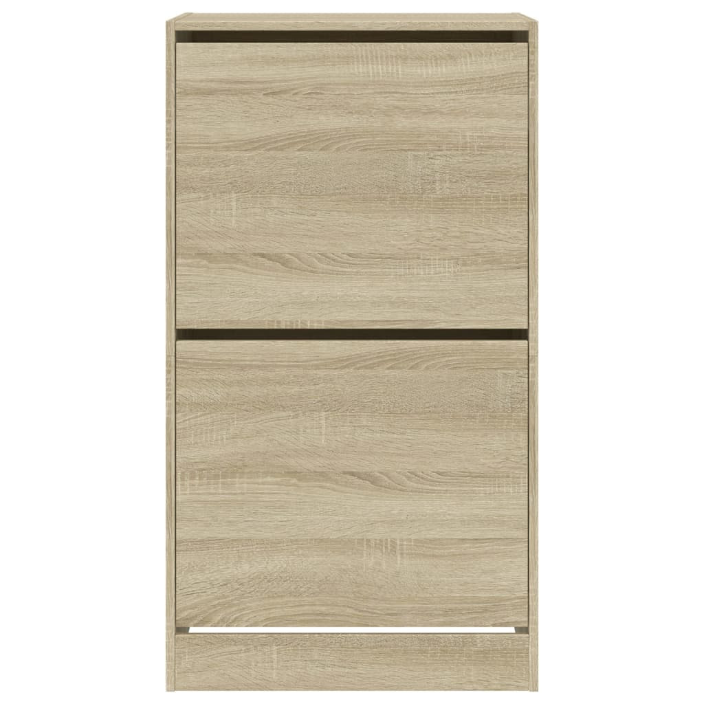 Tartsa rendezetten és mindig elérhető helyen cipőit ezzel a cipőtároló szekrénnyel! Tartós anyag: A szerelt fa kivételes minőségű, sima felületű, szilárd, stabil, és ellenáll a nedvességnek.Helytakarékos kialakítás: A cipőszekrény optimálisan használja ki a függőleges teret, és kis alapterületet foglal el, így különösen alkalmas kis helyiségekbe.Bőséges tárolóhely: A cipőtároló szekrényben kihajtható fiókok találhatók, amelyek elrejtik a cipőket, hogy tiszta és rendetlenségmentes teret biztosítson.Divatos kialakítás: A cipőszekrény letisztult vonalaival és minimalista megjelenésével egy csipetnyi modern hangulatot csempész otthonába. Figyelem:A felborulás elkerülése érdekében ezt a terméket a mellékelt fali rögzítőeszközzel kell használni.