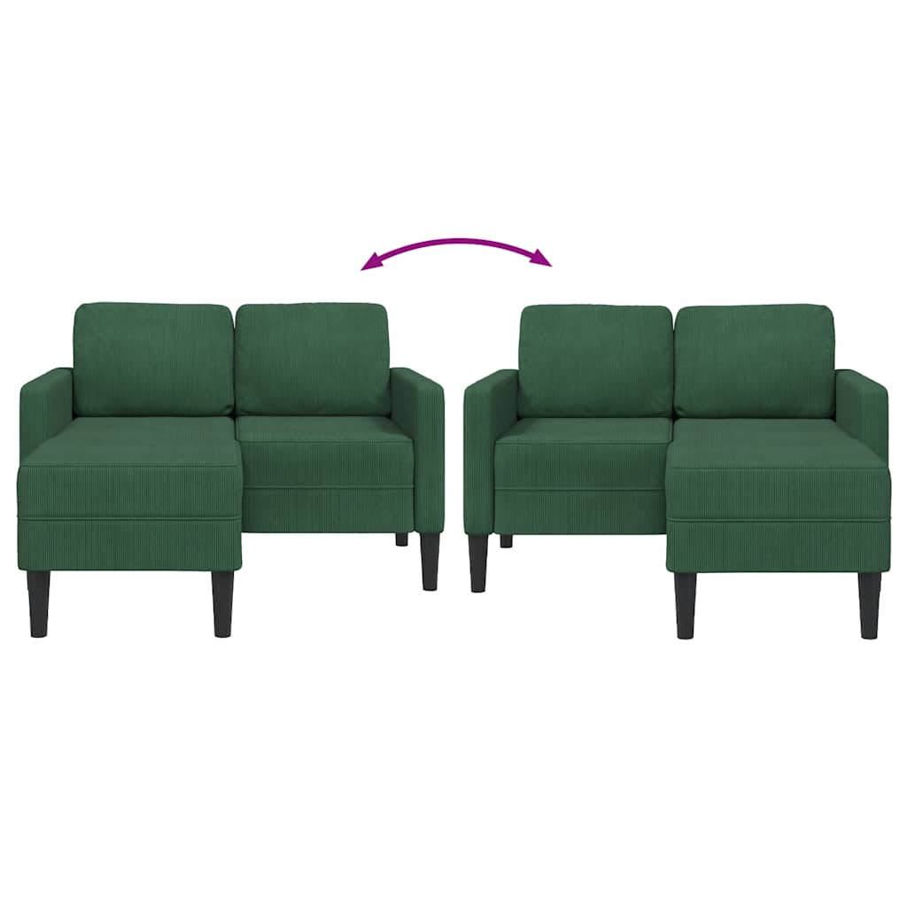 sötét zöld vászon 2 üléses kanapé L-alakú kanapéval 125 cm