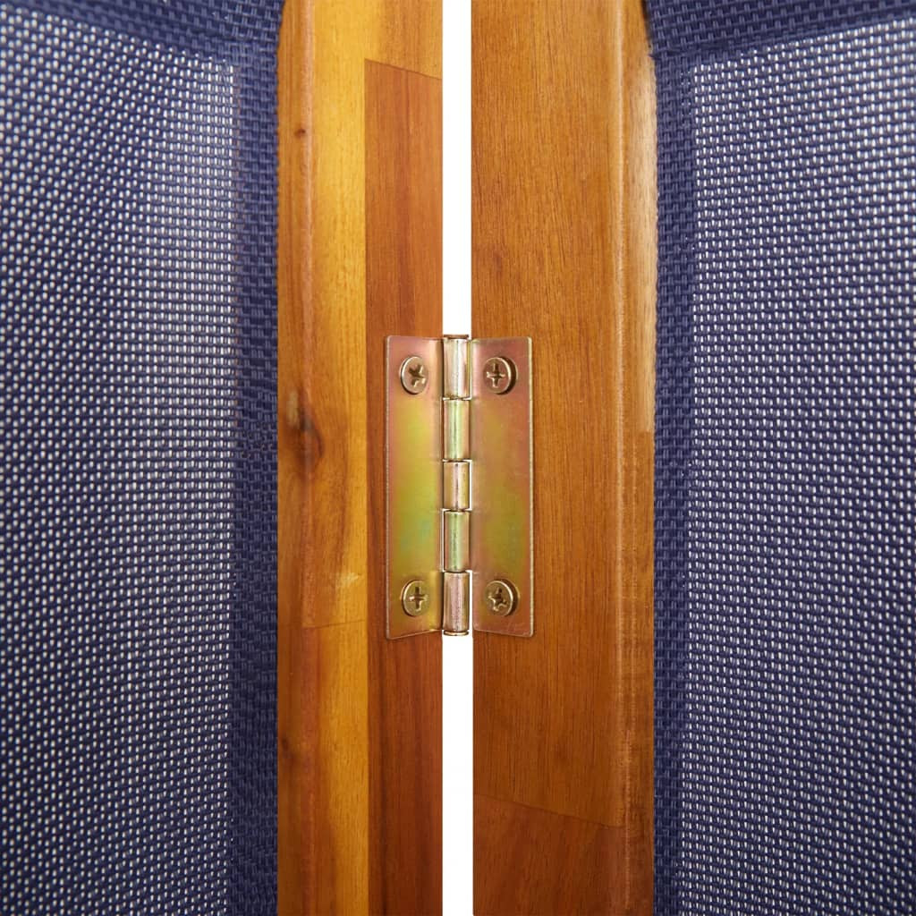 Ez a térelválasztó tökéletes egy szeparált, privát terület vagy rész kialakításához bel-vagy kültéri környezetében. Tartós anyag: A tömör akácfa egy gyönyörű és természetes anyag. Az akácfa egy trópusi keményfa, amely sűrű erezetű, masszív és tartós. Az erős textilén időjárásálló és könnyen tisztítható is.Rugalmas és könnyen összecsukható: Minden válaszfalat horganyzott zsanérok kötnek össze, és bizonyos mértékig a helytakarékosság érdekében igény szerint könnyedén összehajthatóak.Multifunkciós: Ez a szobaparaván dekorációként és térelválasztóként is használható. Tökéletes egy terület leválasztására privát szféra létrehozásához vagy egy extra helyiség kialakításához.
