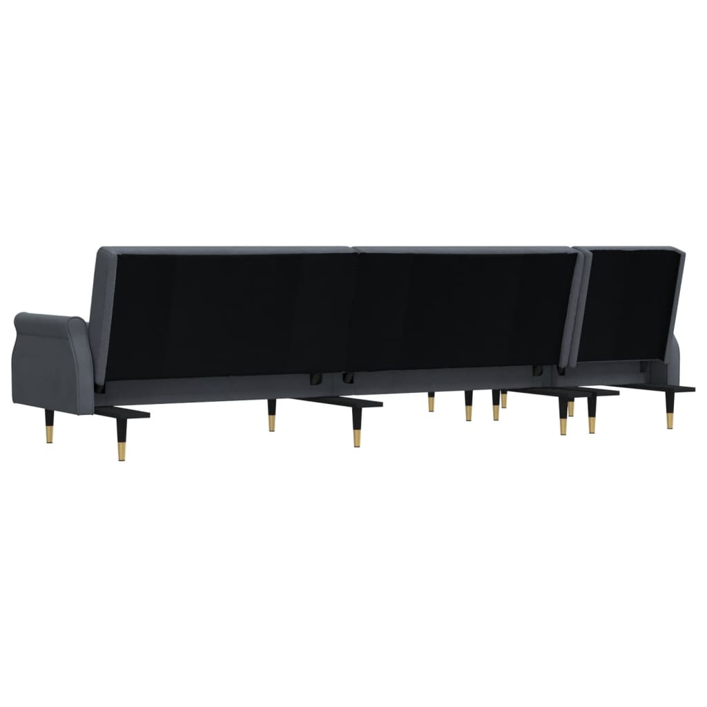 sötétszürke L-alakú bársony kanapéágy 271x140x70 cm
