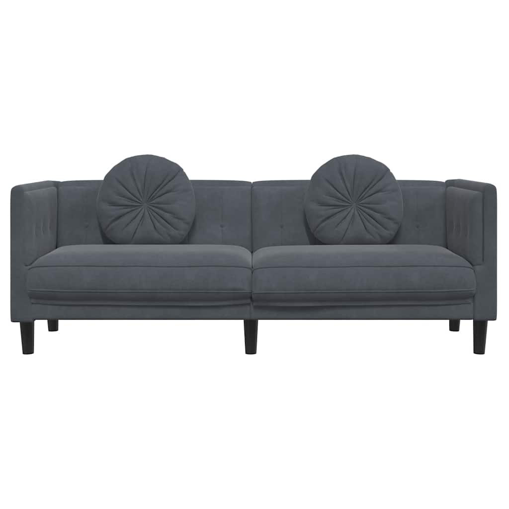 sötétszürke bársony 3 személyes kanapé párnákkal