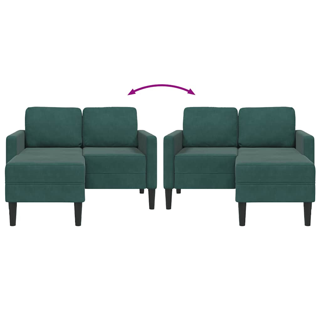 sötétzöld bársony 2 üléses kanapé L-alakú kanapéval 125 cm