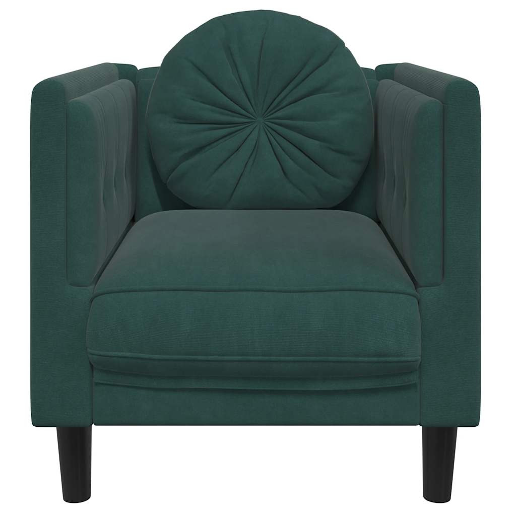 sötétzöld bársony kanapéfotel párnával