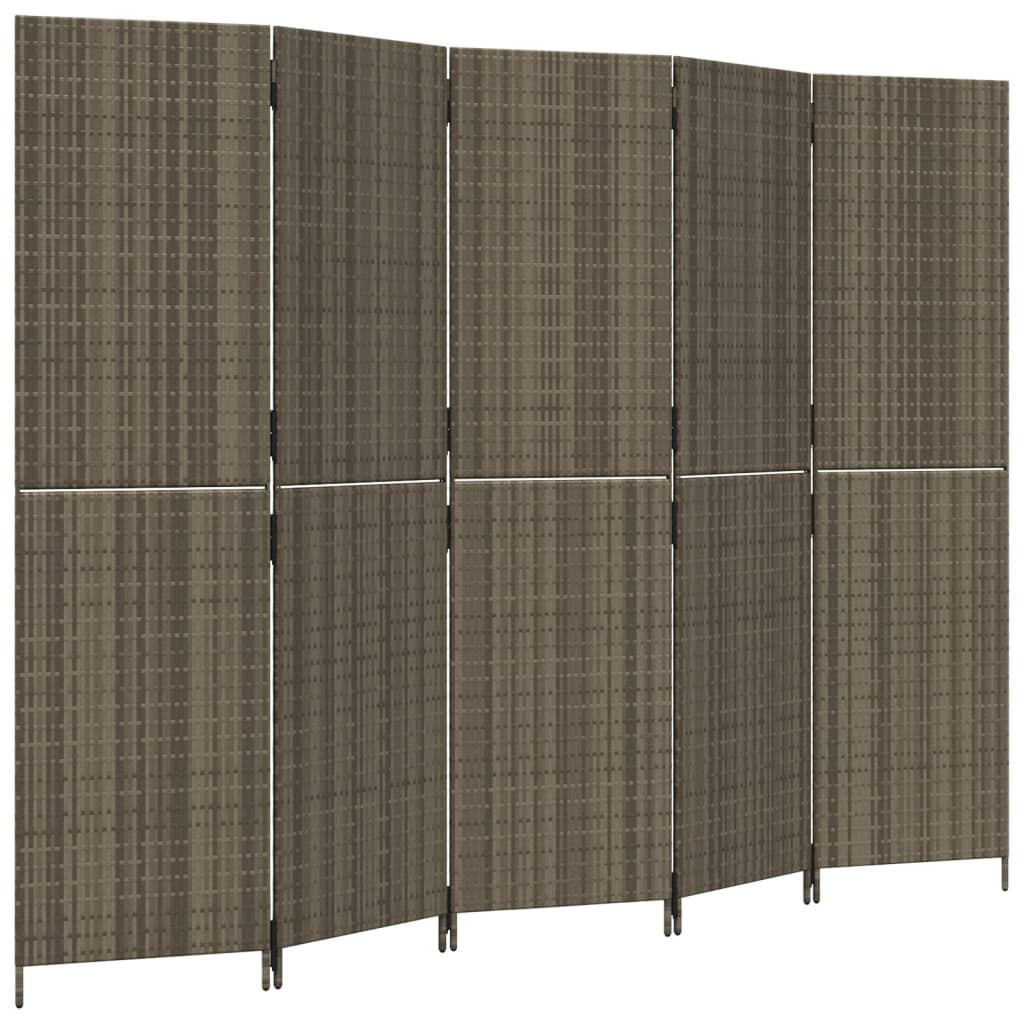 szürke 5-paneles polyrattan térelválasztó