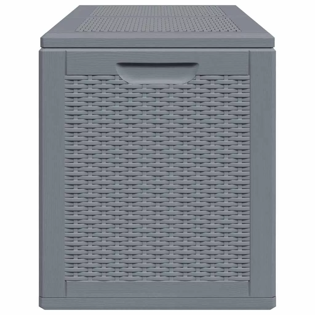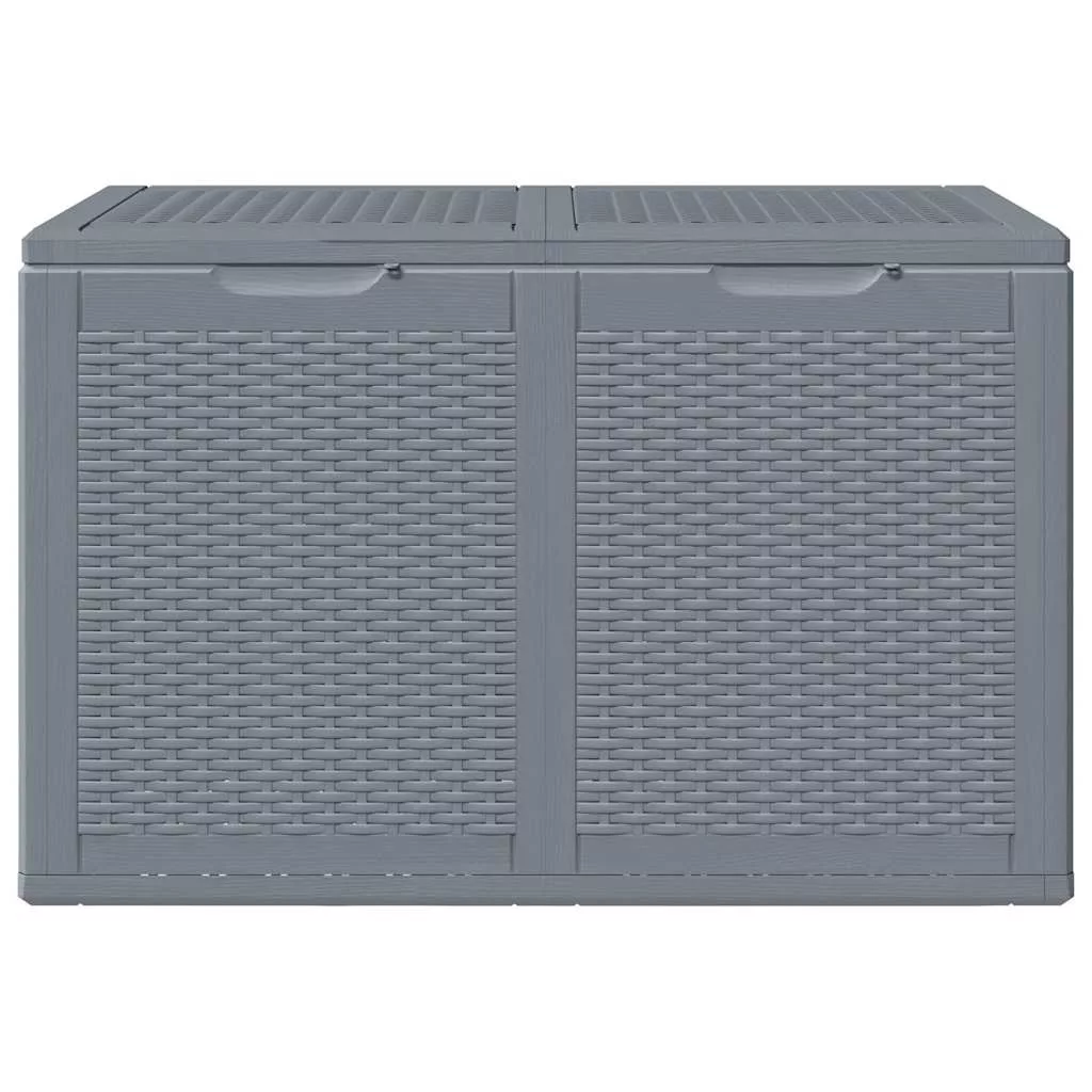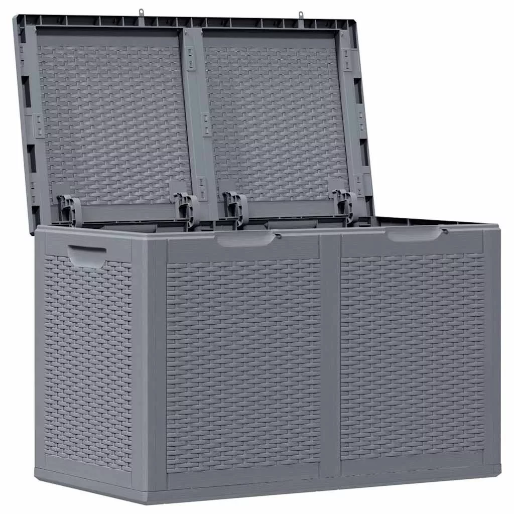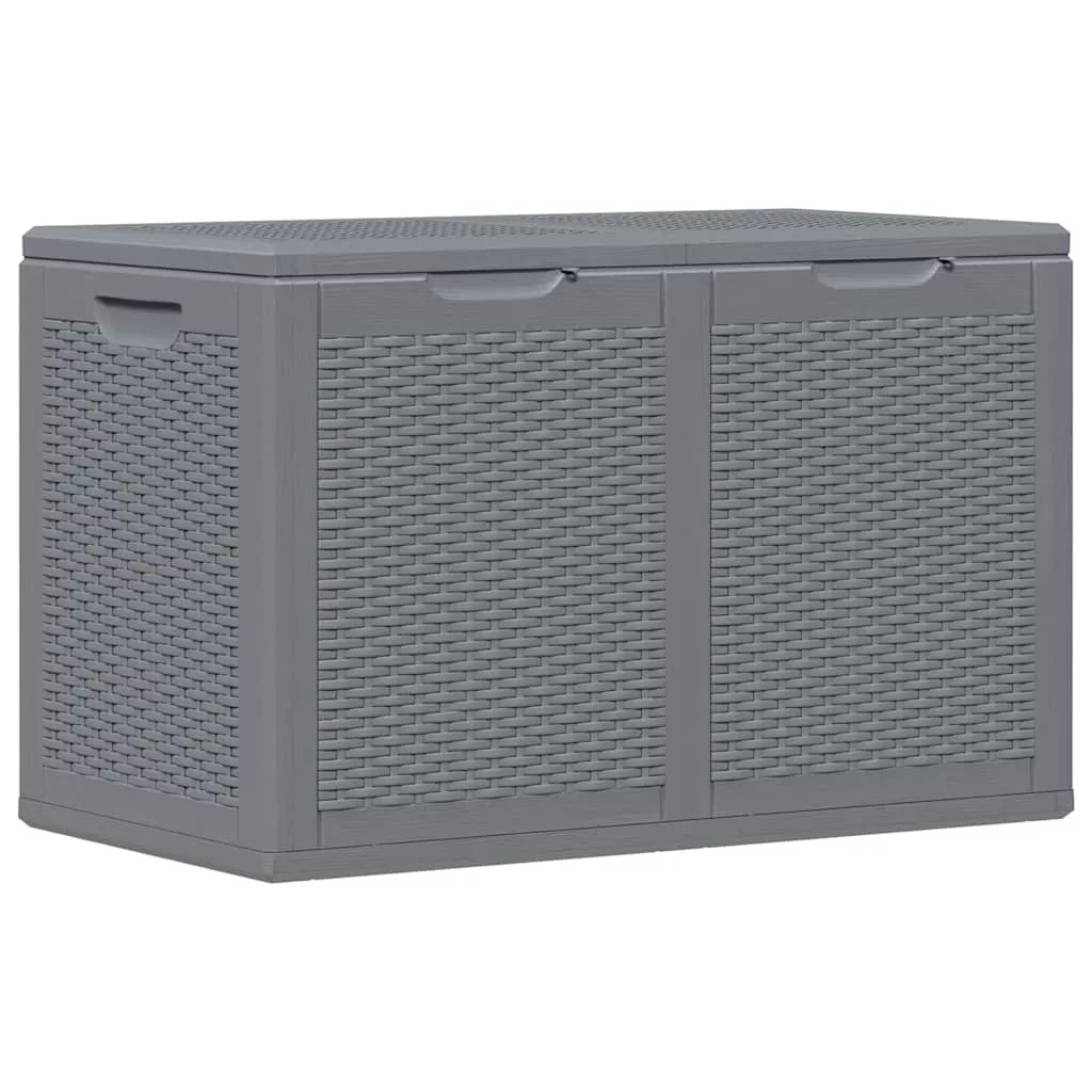 Ez az egyszerű kerti tárolóláda kiváló megoldás a kert, az udvar vagy a terasz rendbetételére. Tartós anyag: A polipropilén (PP) egy népszerű műanyagfajta, mely a legtöbb kültéri bútor alkotóeleme. Könnyű, erős és ütésálló.Bőséges tárolóhely: A tárolóláda bőséges tárolóhelyet kínál párnák, vánkosok, egyéb háztartási kellékek és kerti eszközök elérhető közelségben tartásához.Könnyen mozgatható: A kültéri tárolóláda egyszerűen elhelyezhető vagy mozgatható a kertben, a teraszon vagy az erkélyen a kétoldali, süllyesztett markolatoknak köszönhetően.Időtálló kialakítás: A szerszámosláda visszafogott, mégis időtálló kialakítása tökéletesen beleillik kültéri környezetébe. Jó tudni:A szerelés megkönnyítése érdekében minden termék kézikönyvvel együtt kerül kiszállításra.Megjegyzés:A kültéri bútor szépségének megőrzése érdekében javasoljuk, hogy vízálló huzattal fedje be.