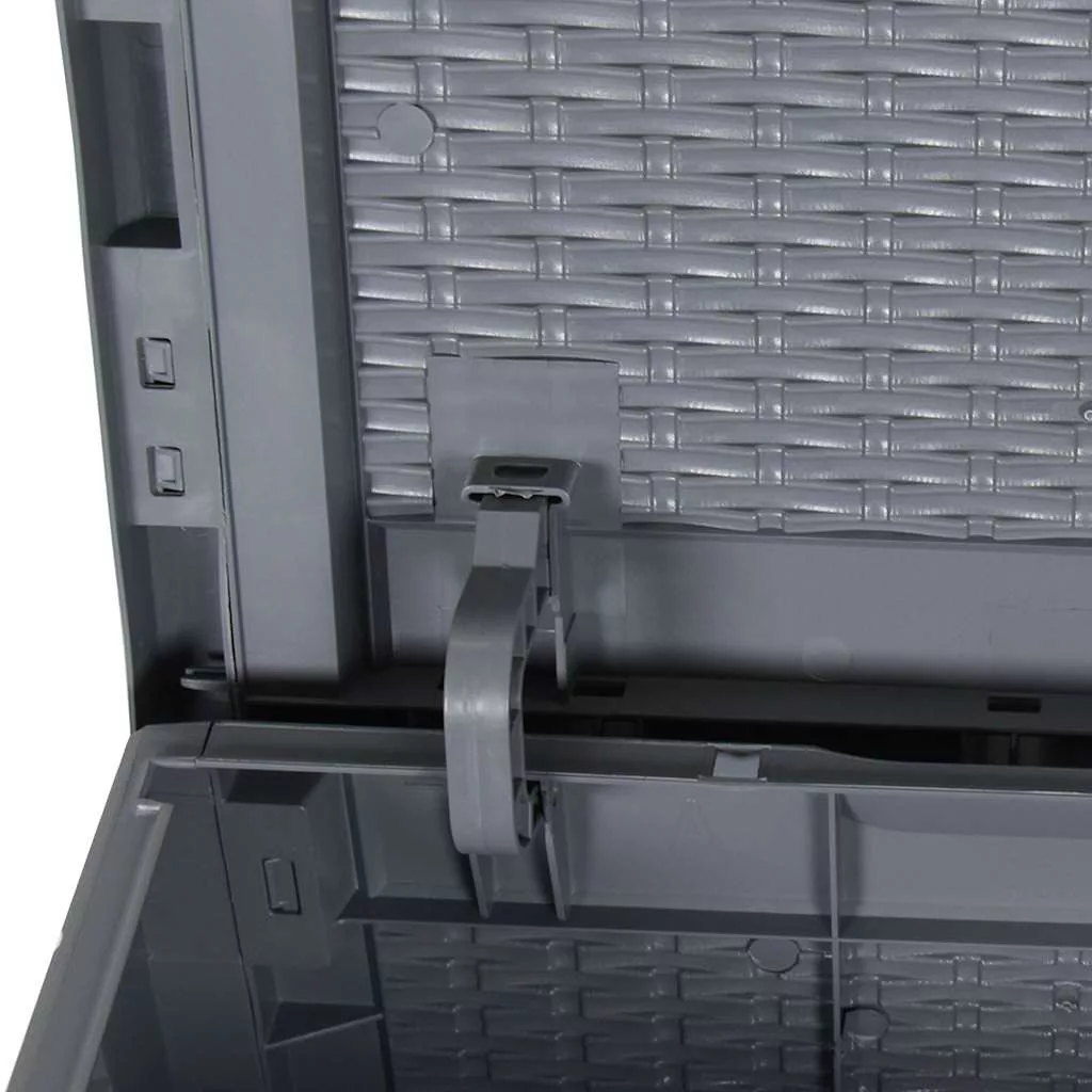 Ez az egyszerű kerti tárolóláda kiváló megoldás a kert, az udvar vagy a terasz rendbetételére. Tartós anyag: A polipropilén (PP) egy népszerű műanyagfajta, mely a legtöbb kültéri bútor alkotóeleme. Könnyű, erős és ütésálló.Bőséges tárolóhely: A tárolóláda bőséges tárolóhelyet kínál párnák, vánkosok, egyéb háztartási kellékek és kerti eszközök elérhető közelségben tartásához.Könnyen mozgatható: A kültéri tárolóláda egyszerűen elhelyezhető vagy mozgatható a kertben, a teraszon vagy az erkélyen a kétoldali, süllyesztett markolatoknak köszönhetően.Időtálló kialakítás: A szerszámosláda visszafogott, mégis időtálló kialakítása tökéletesen beleillik kültéri környezetébe. Jó tudni:A szerelés megkönnyítése érdekében minden termék kézikönyvvel együtt kerül kiszállításra.Megjegyzés:A kültéri bútor szépségének megőrzése érdekében javasoljuk, hogy vízálló huzattal fedje be.