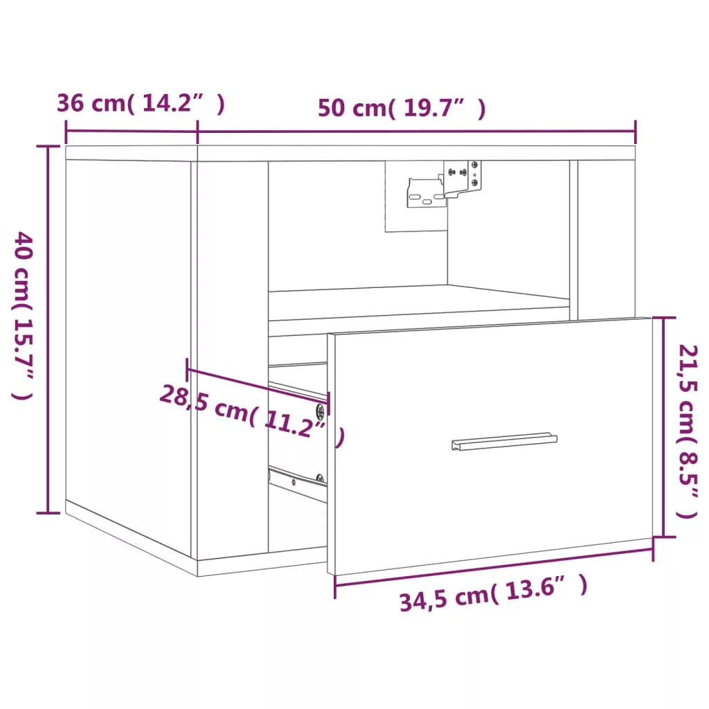 szürke falra szerelhető éjjeliszekrény 50 x 36 x 40 cm