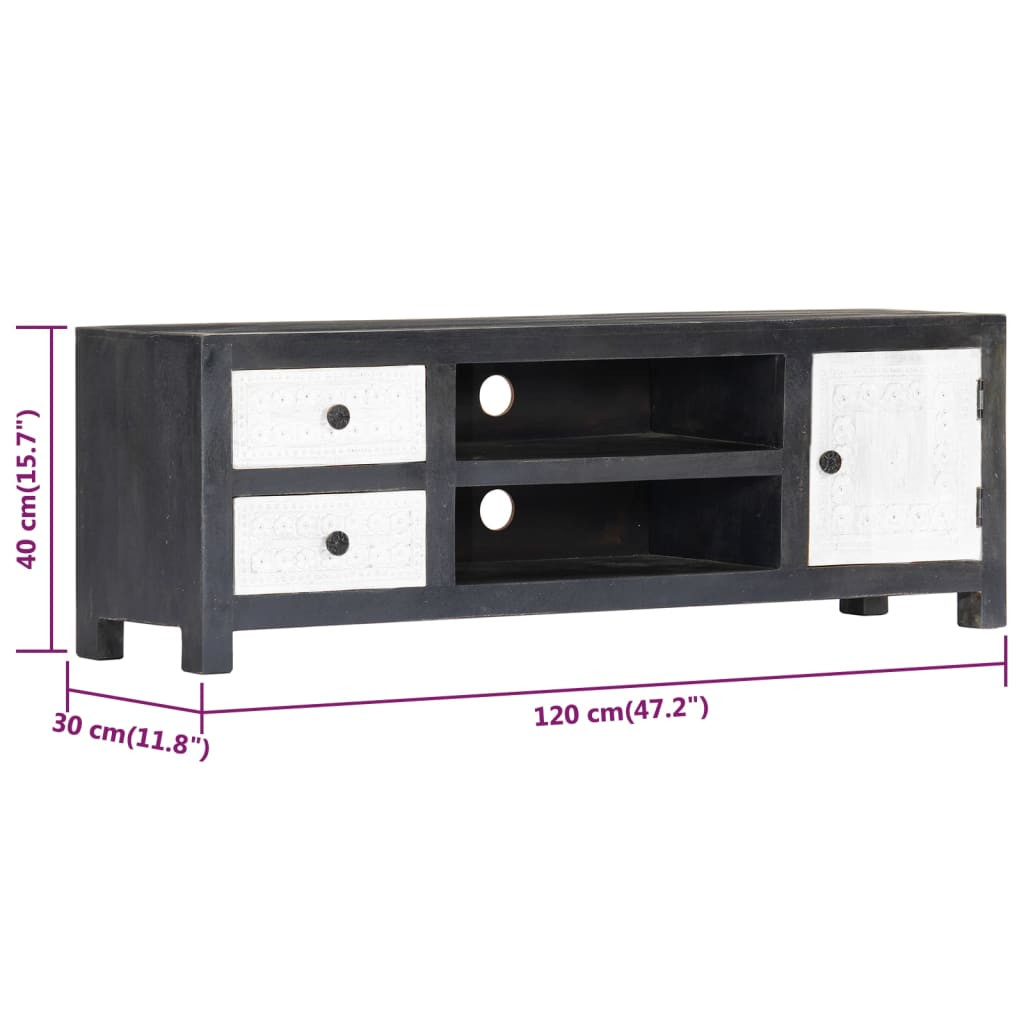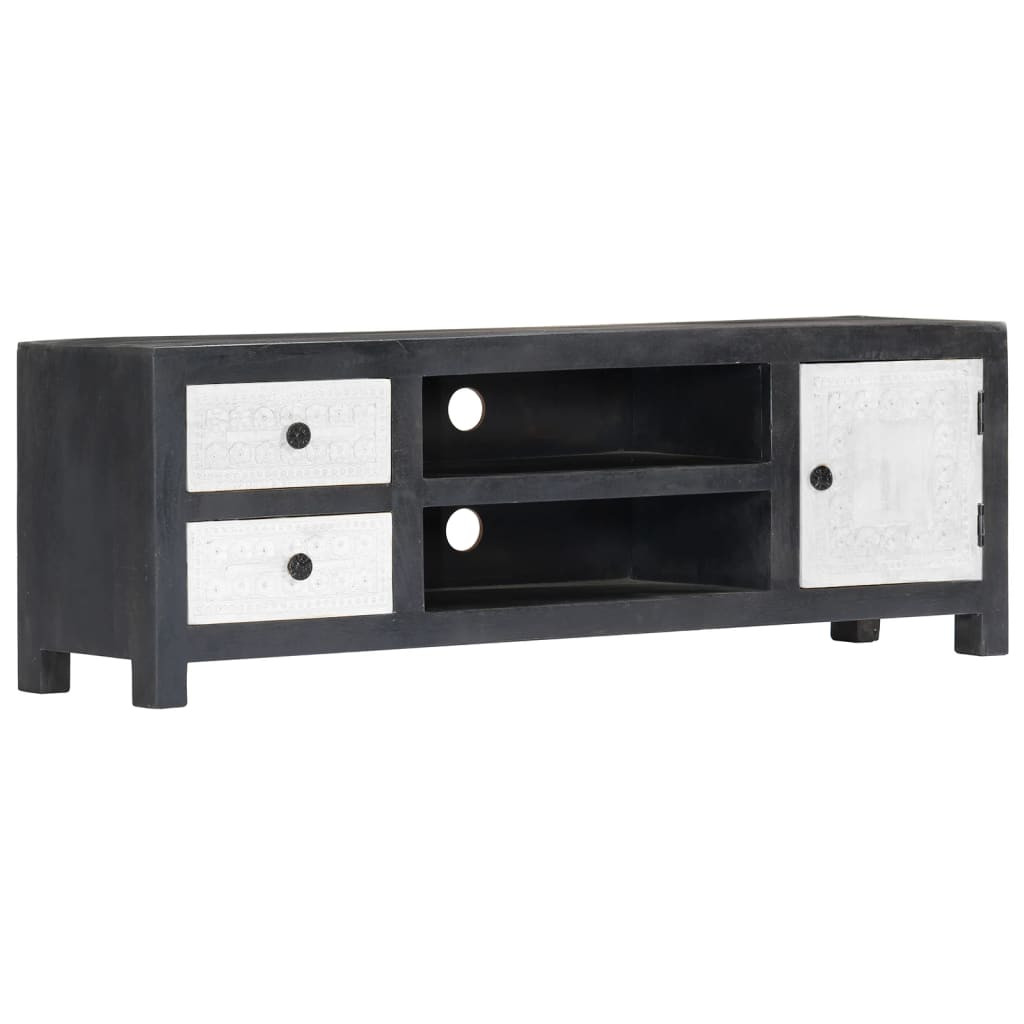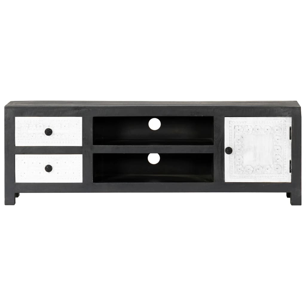 szürke/fehér kézzel faragott mangófa TV-szekrény 120x30x40 cm