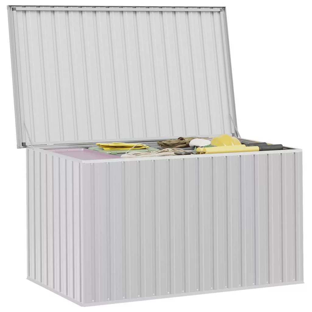 Ez a stílusos tárolódoboz ideális párnák, kispárnák, takarók és egyéb tárgyak tárolására a kertben vagy a teraszon. Tartós anyag: A tárolóláda masszív horganyzott acélból készült, amely beltéri és kültéri használatra egyaránt alkalmas.Sokoldalú felhasználás: A tágas kerti láda kiválóan alkalmas párnák, kispárnák, takarók és egyéb tárgyak tárolására. Masszív szerkezetének köszönhetően szerszámosládaként is használható.Stílusos dizájn: A kerti tárolóláda visszafogott, mégis időtlen dizájnnal rendelkezik, amely minden dekorációba beleolvad.Jó tudni:A nagy hófelhalmozódás okozta károk elkerülése érdekében javasoljuk, hogy télen rendszeresen tisztítsa meg a tetőt.