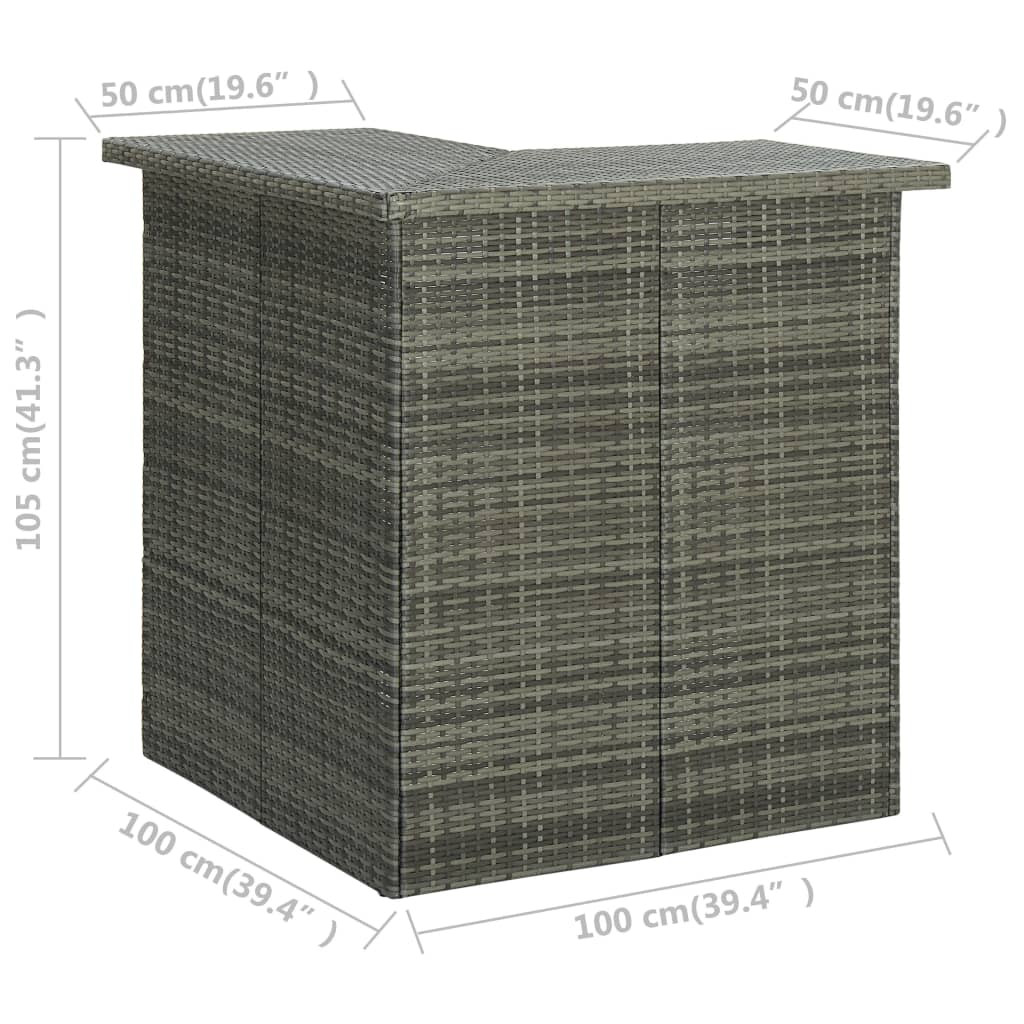 szürke polirattan sarok bárasztal 100 x 50 x 105 cm