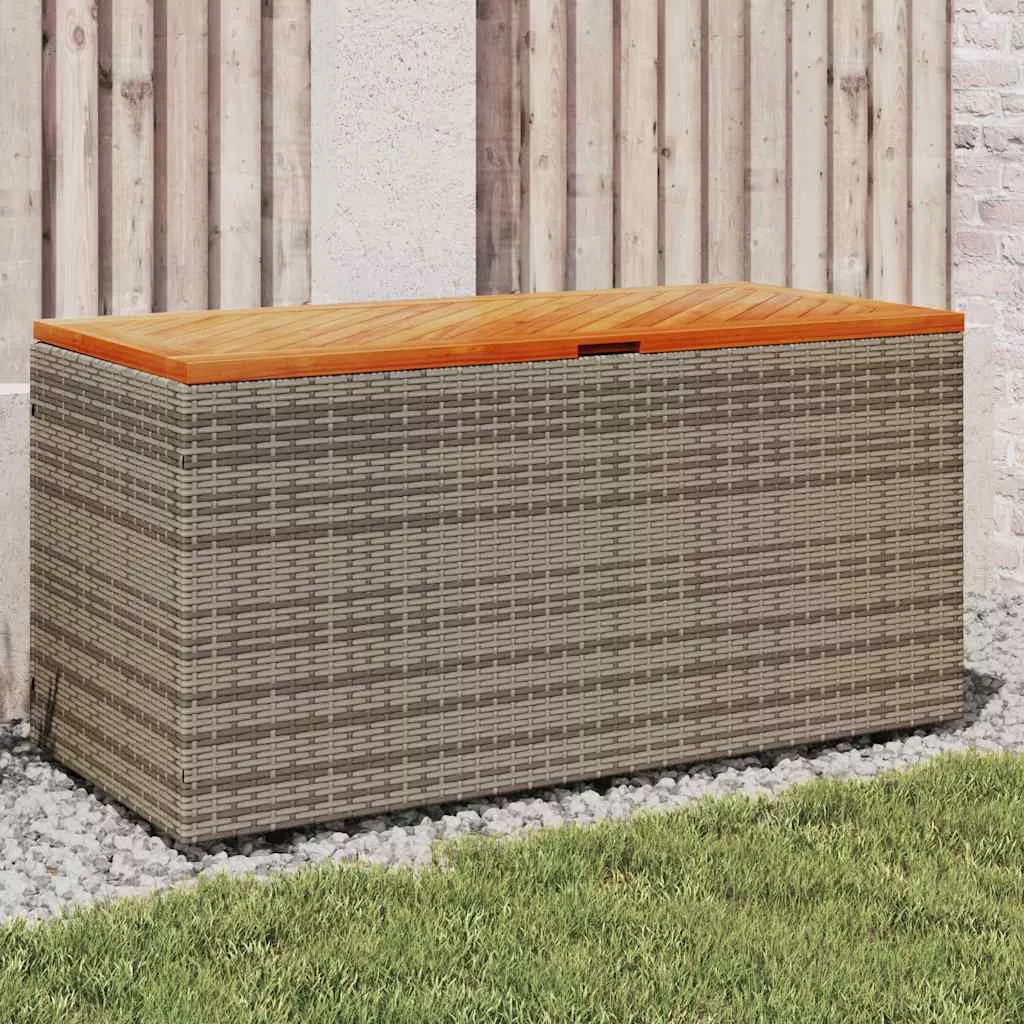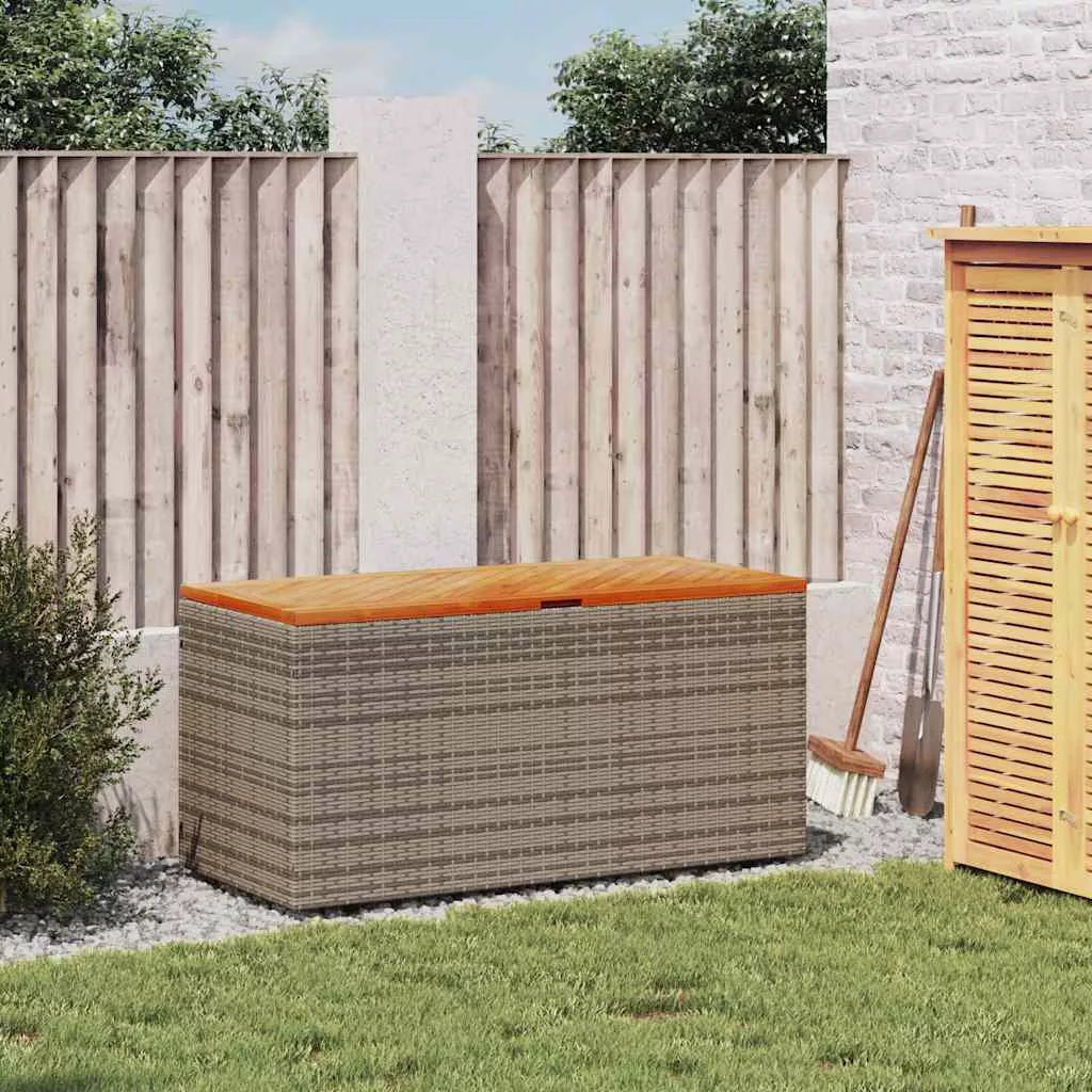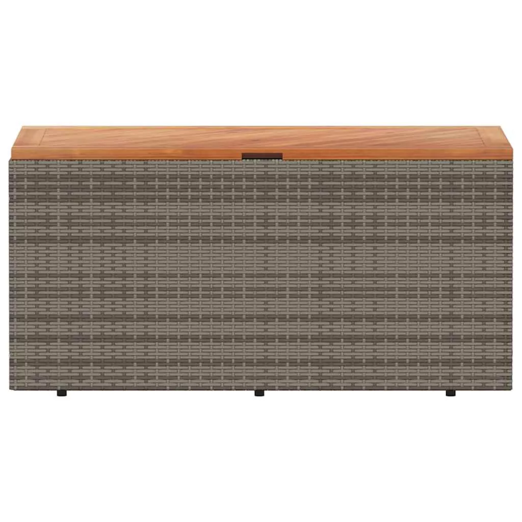 szürke polyrattan és akácfa kerti tárolóláda 110 x 50 x 54 cm