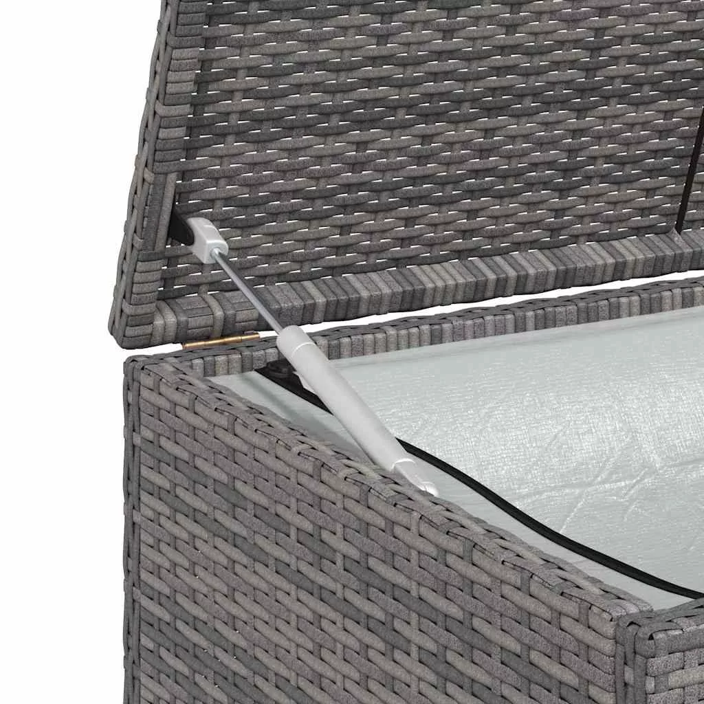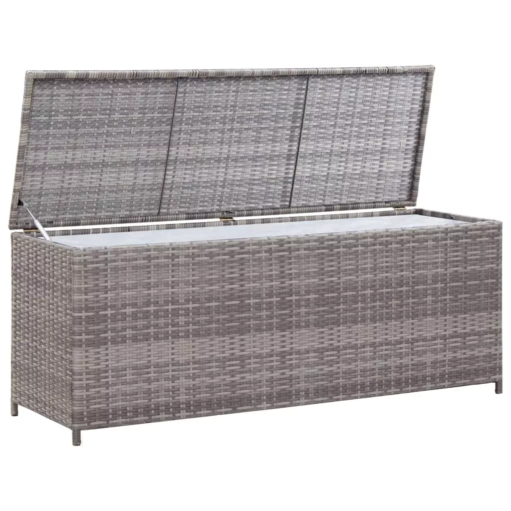 Ez a PE rattan kerti tárolóláda ideális tárolóhelyet biztosít takarók, párnák, játékok, könyvek és egyéb, a kertben vagy teraszon heverő tárgyak számára. A tárolóláda béléssel rendelkezik, így ideális tárolóhelyet biztosít a kerti bútor párnáinak vagy bármilyen egyéb tárgynak. Az időjárás viszontagságainak ellenálló PE rattannak hála a tárolódoboz könnyen tisztítható, kopásálló és mindennapos kültéri használatra is alkalmas. A láda erős, porszórt acélvázzal rendelkezik, ezért nagyon tartós. A poliészter bélés megvédi a láda tartalmát a nedvességtől. Figyelem: Kérjük, takarja le a ládát egy vízálló ponyvával/vászonnal, hogy esős időben ne kerüljön bele víz.