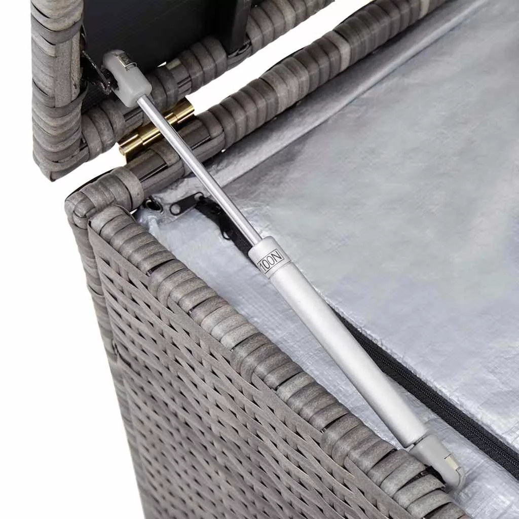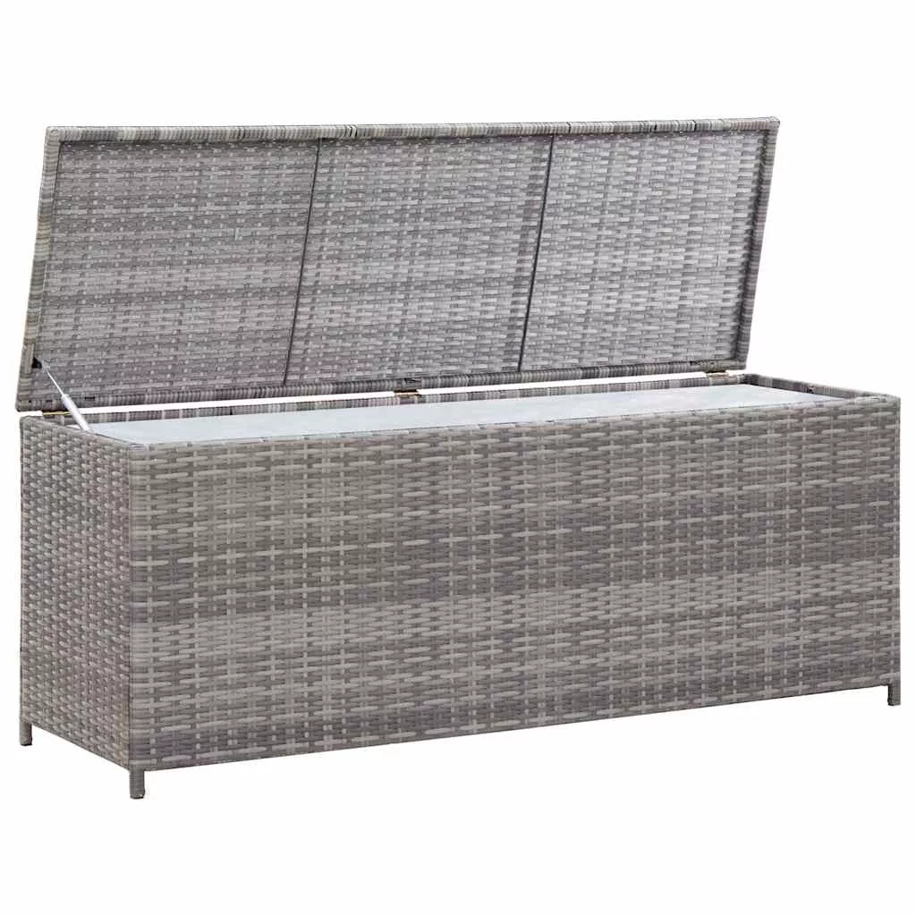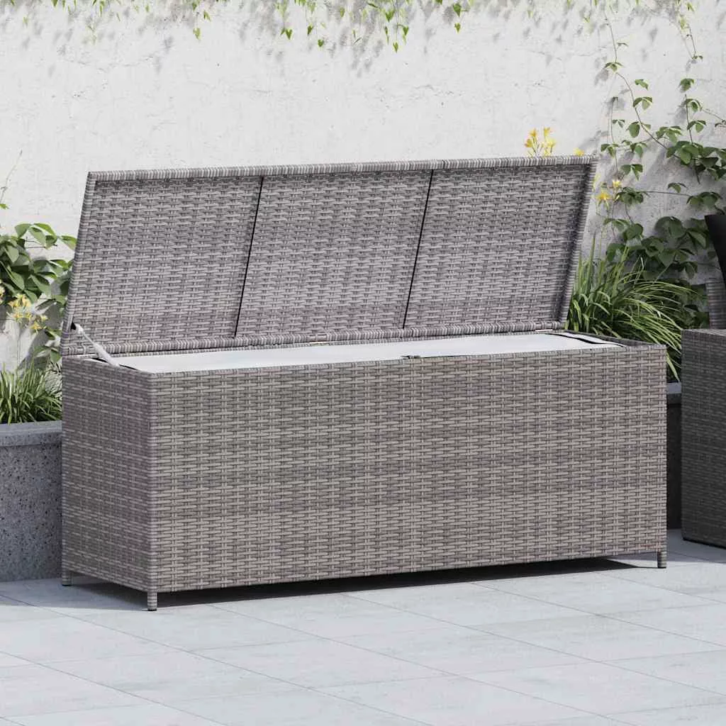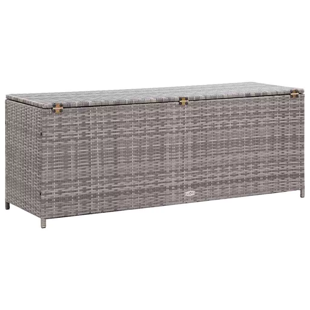 szürke polyrattan kerti tárolóláda 150 x 50 x 60 cm