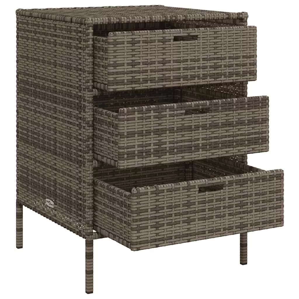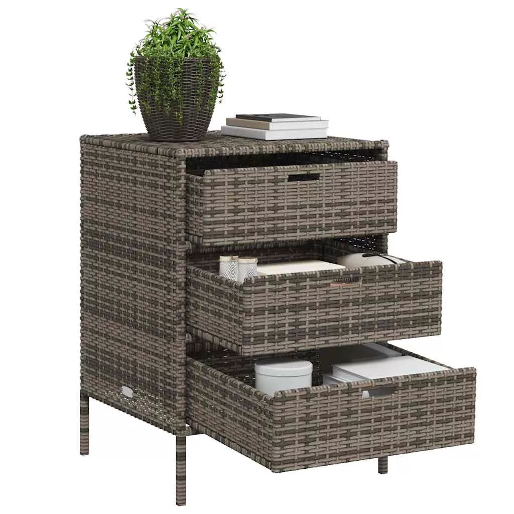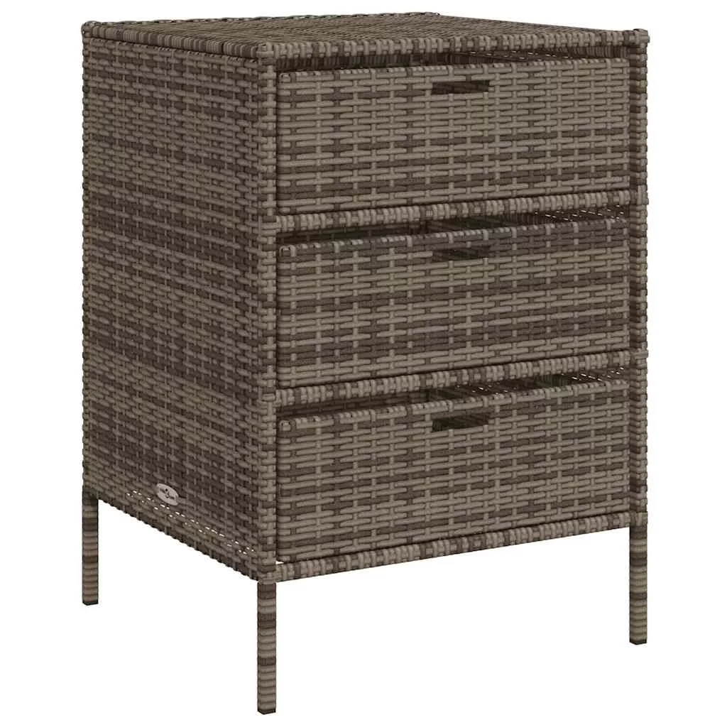 Ez a kerti tárolószekrény tökéletes a kerti bútorpárnák, kerti kellékek, medencetörölközők és egyéb tárgyak rendezett és könnyen hozzáférhető tárolására. Tartós anyag: A PE rattan, más néven polyrattan, egy erős, kevés karbantartást igénylő szintetikus anyag, amely úgy néz ki, mint a természetes rattan. Könnyű, könnyen tisztítható, tartóssága és időjárásálló tulajdonságai miatt gyakran használják kültéri bútorok készítéséhez.Bőséges tárolóhely: Ez a kültéri tárolószekrény 3 fiókkal rendelkezik a kerti szerszámok, medencejátékok, kültéri párnák és egyebek tárolására.Robusztus és stabil váz: A porszórt acél váz biztosítja, hogy a kerti bútor erős és stabil legyen a mindennapi kültéri használathoz. FigyelemA felborulás elkerülése érdekében ezt a terméket a mellékelt fali rögzítőeszközzel kell használni. Jó tudni:A kültéri bútor szépségének megőrzése érdekében javasoljuk, hogy vízálló huzattal fedje be.