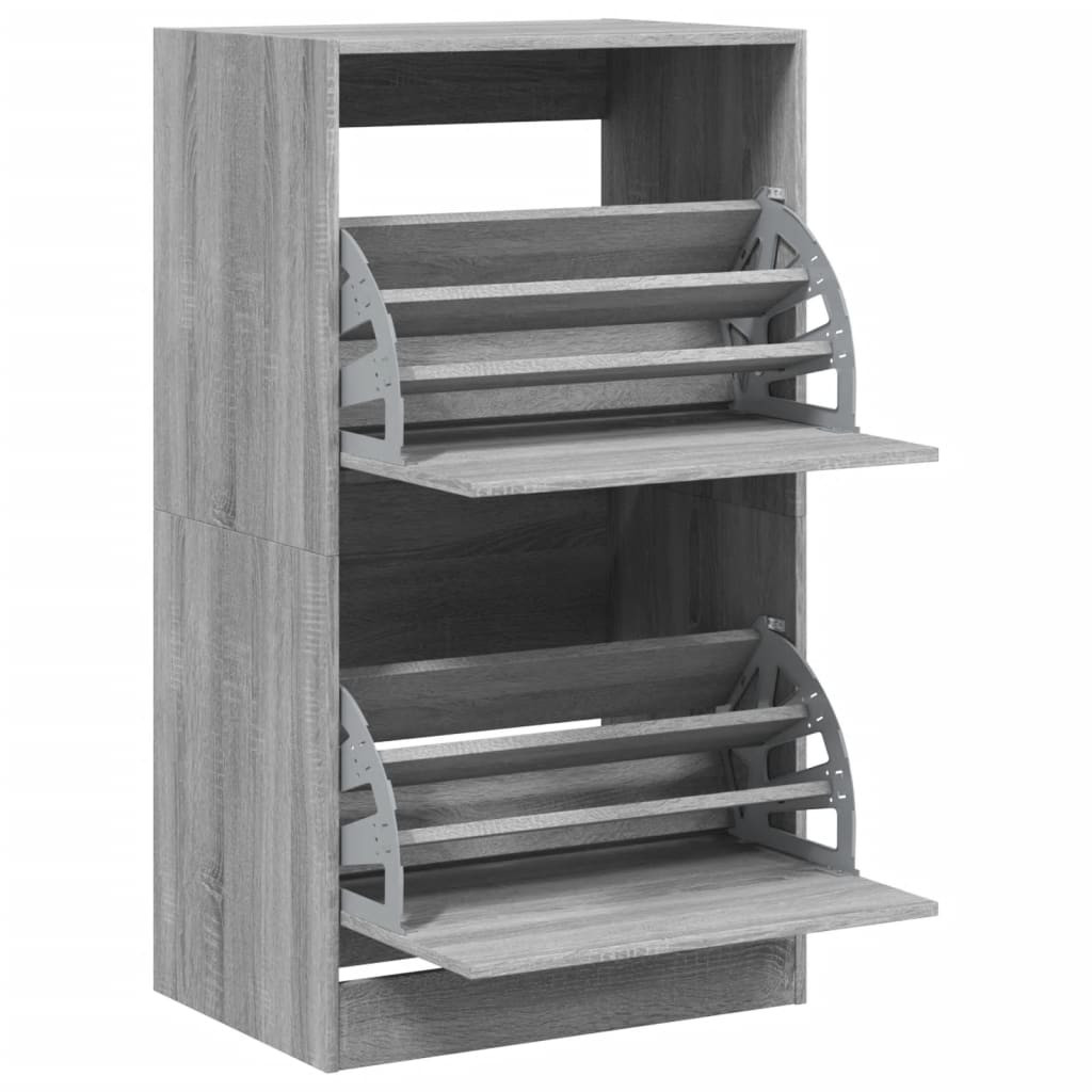 Tartsa rendezetten és mindig elérhető helyen cipőit ezzel a cipőtároló szekrénnyel! Tartós anyag: A szerelt fa kivételes minőségű, sima felületű, szilárd, stabil, és ellenáll a nedvességnek.Helytakarékos kialakítás: A cipőszekrény optimálisan használja ki a függőleges teret, és kis alapterületet foglal el, így különösen alkalmas kis helyiségekbe.Bőséges tárolóhely: A cipőtároló szekrényben kihajtható fiókok találhatók, amelyek elrejtik a cipőket, hogy tiszta és rendetlenségmentes teret biztosítson.Divatos kialakítás: A cipőszekrény letisztult vonalaival és minimalista megjelenésével egy csipetnyi modern hangulatot csempész otthonába. Figyelem:A felborulás elkerülése érdekében ezt a terméket a mellékelt fali rögzítőeszközzel kell használni.