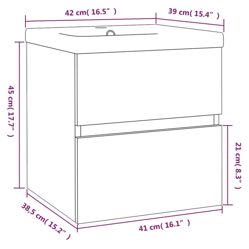 Ez a tágas tárolórésszel rendelkező, stílusos mosdószekrény beépített mosdóval fürdőszobája nagyszerű kiegészítője lesz, rendezett és lenyűgöző megjelenést kölcsönözve neki! Masszív anyag: A mosdó alatti szekrény szerelt fából készült, ami kivételes minőségű, sima felületű, szilárd, stabil, és ellenáll a nedvességnek.Bőséges tárolóhely: A fürdőszobai mosdóegység egy fiókkal rendelkezik, amely bőséges helyet biztosít a fürdőszobában lévő holmik tárolására.Praktikus kialakítás: A fürdőszobaszekrény teteje ideális a mosdókagyló elhelyezésére.Falra szerelhető: A fürdőszobaszekrény falra szerelhető, így extra tárolóhelyet biztosít. Ezáltal maximalizálhatja az alapterületet, és tisztán tarthatja a környezetét.Túlfolyófunkció: Túlfolyóval is rendelkezik, hogy kifolyjon a víz, ha a mosdó túlságosan megtelik. Megjegyzés:A falon belüli csavar(ok) és dugó(k) nem alaptartozékok. Keressen és használjon a falának megfelelő csavar(oka)t és dugó(ka)t. Ha bizonytalan, kérje szakember tanácsát. Gondosan olvassa el és kövesse a használati utasítás minden lépését.Figyelem: a szállítás a csapot és a lefolyót nem tartalmazza.Az egyszerű összeszerelés érdekében minden termékhez mellékelünk összeszerelési útmutatót. A gyermekeket felügyelni kell, hogy ne játsszanak a készülékkel. Tartsa távol a gyerekeket az összeszerelési területtől. Figyelem: Használat előtt figyelmesen olvassa el az utasításokat, és őrizze meg további hivatkozás céljából.