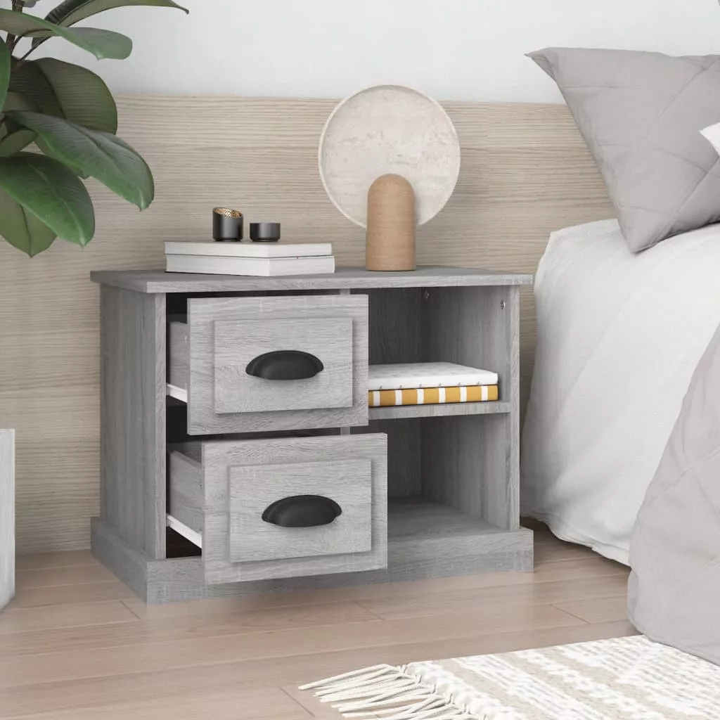 szürke sonoma színű éjjeliszekrény 60x35,5x45 cm