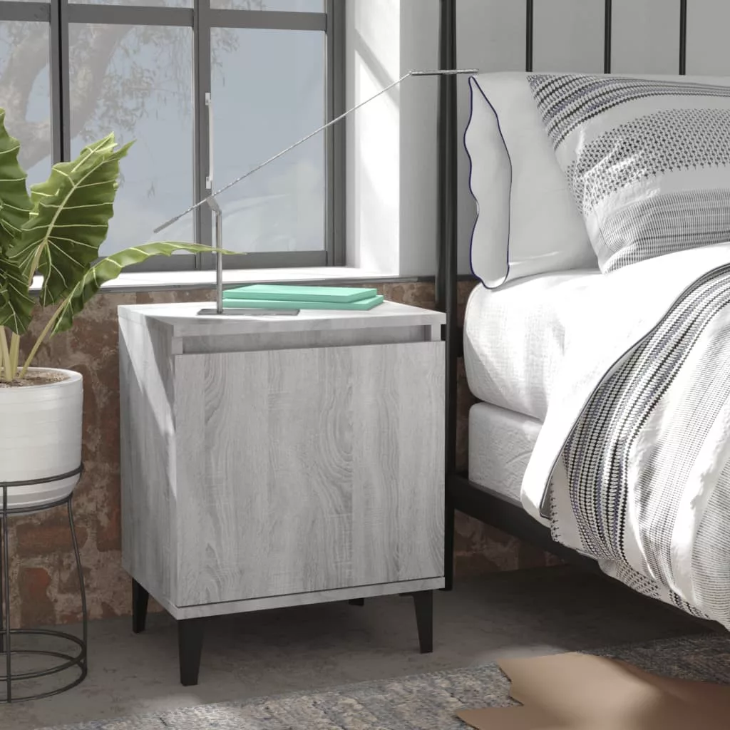 szürke sonoma színű éjjeliszekrény fém lábbal 40 x 30 x 50 cm