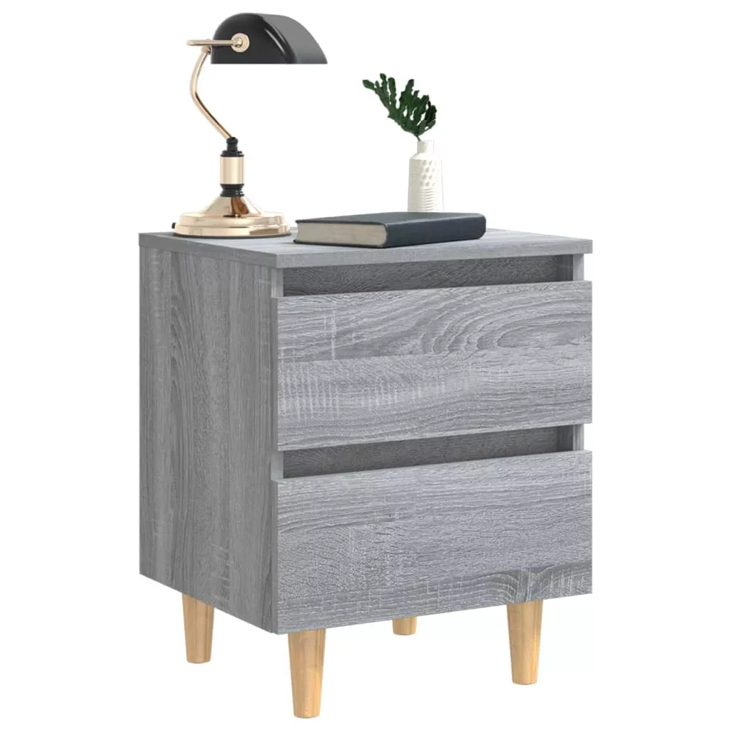 szürke sonoma színű éjjeliszekrény tömör falábakkal 40x35x50 cm