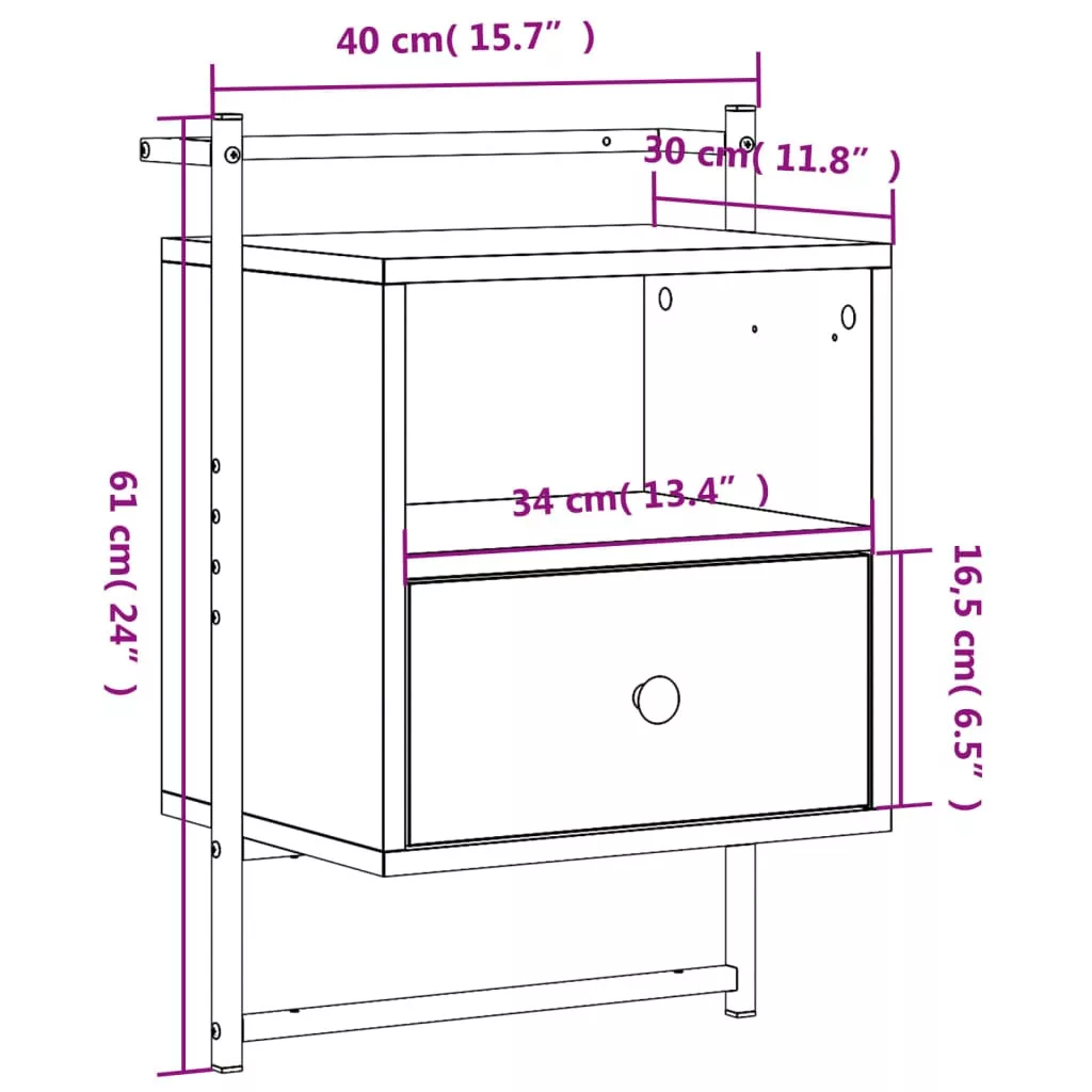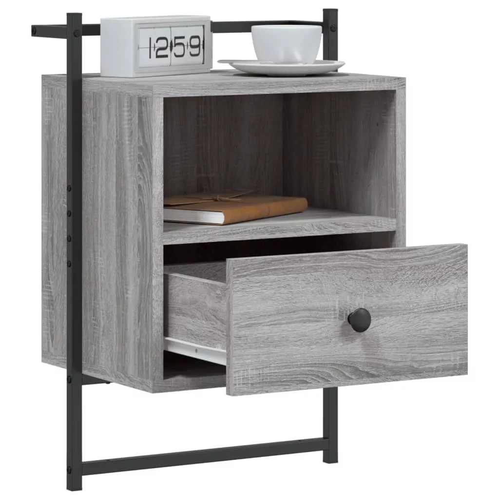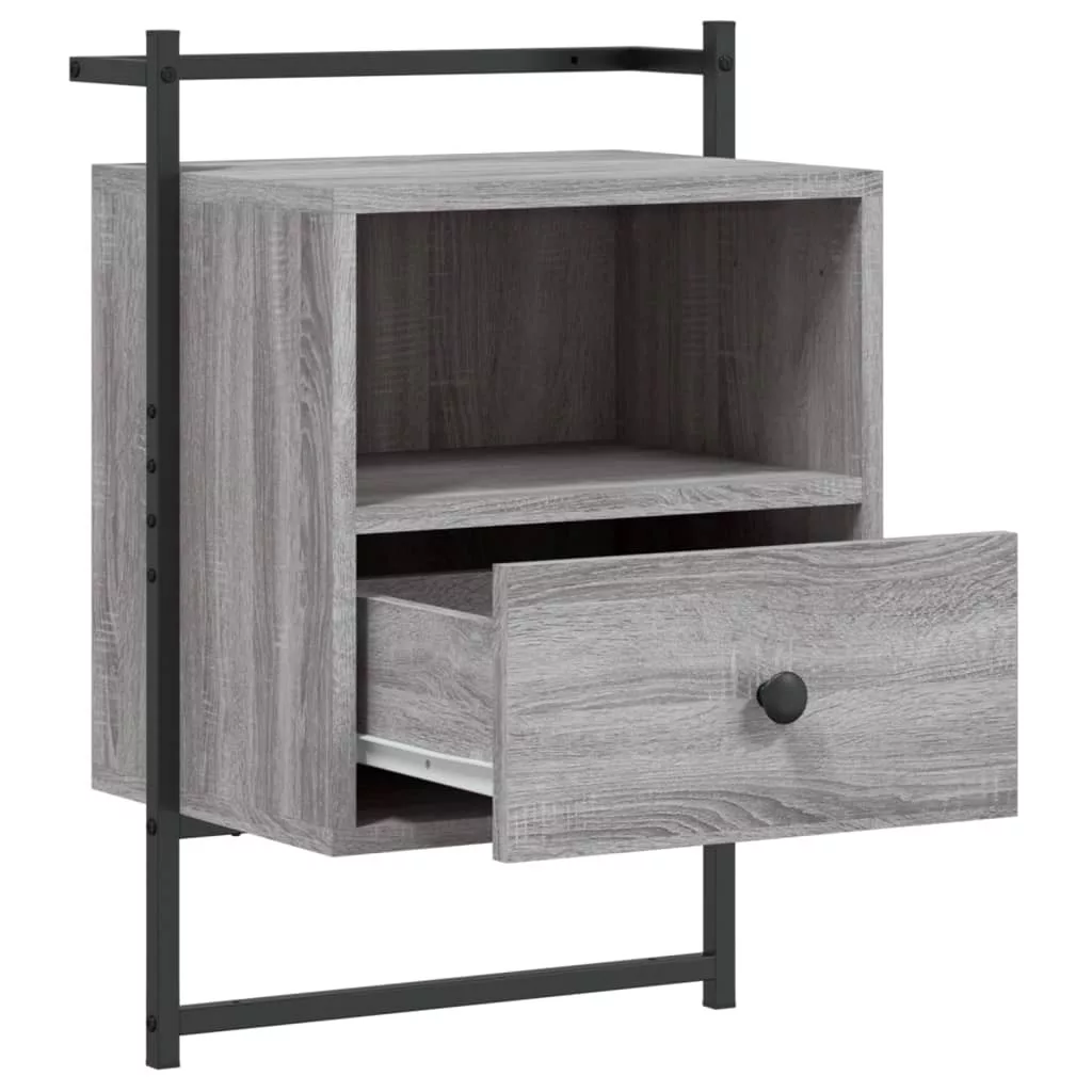 szürke sonoma színű fali szerelt fa éjjeliszekrény 40x30x61 cm
