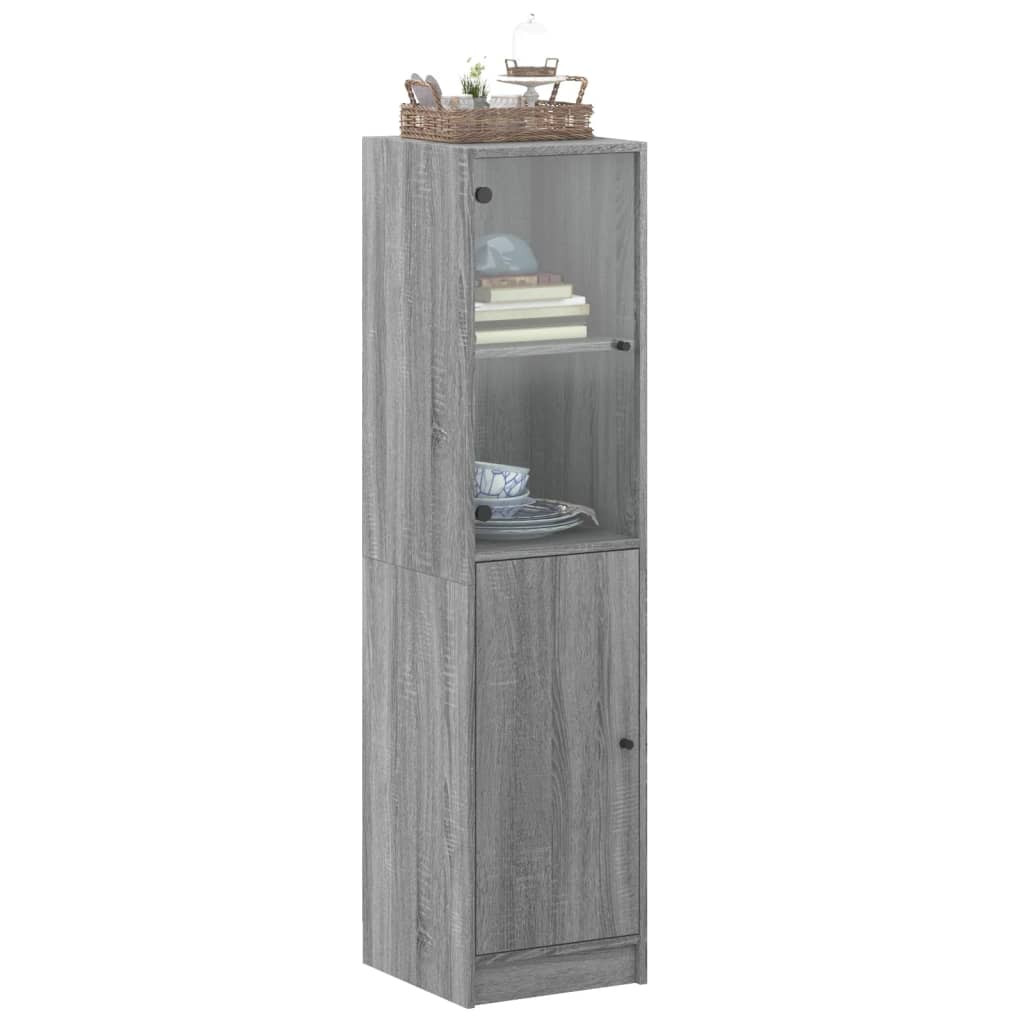 szürke sonoma színű magasszekrény üvegajtóval 35 x 37 x 142 cm
