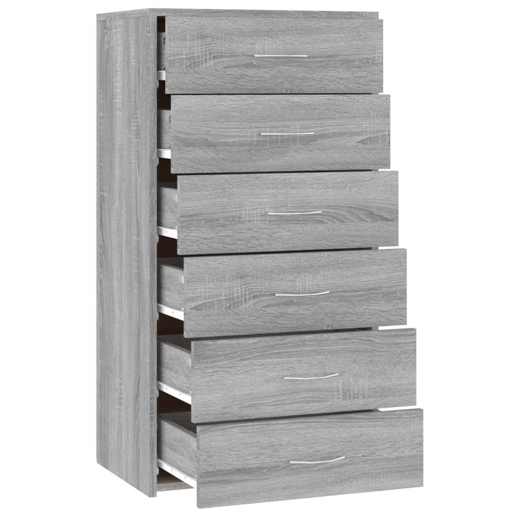 szürke sonoma színű szerelt fa komód 6 fiókkal 50x34x96 cm