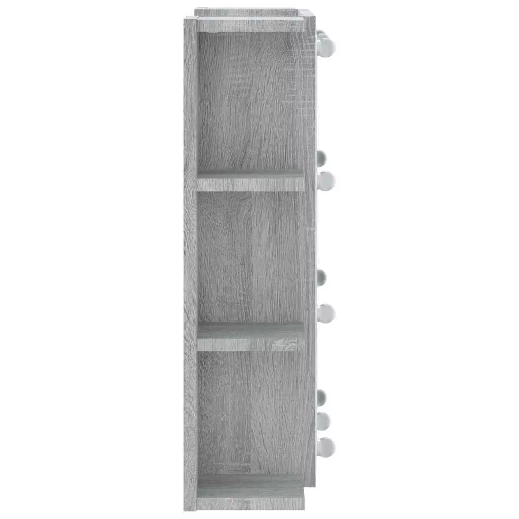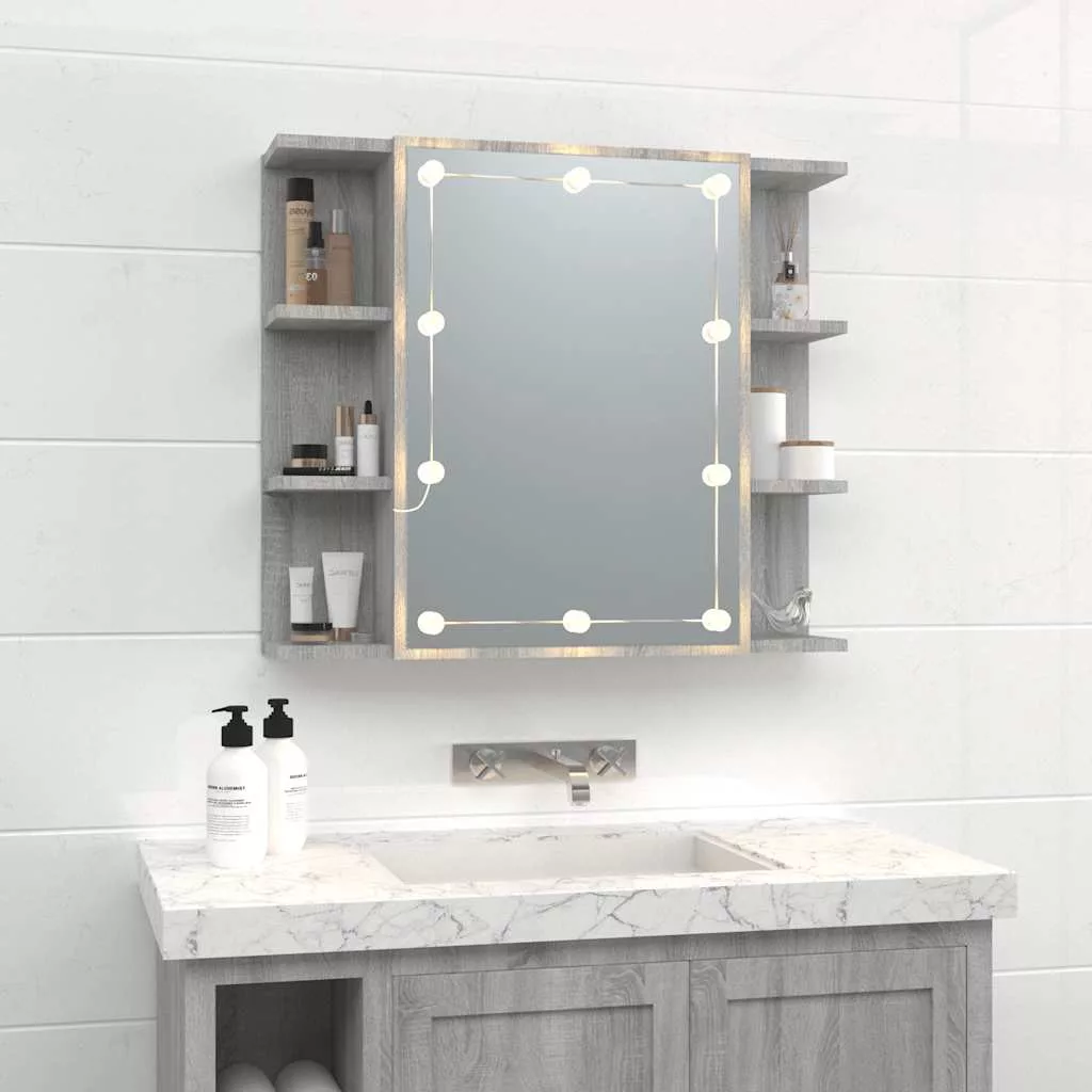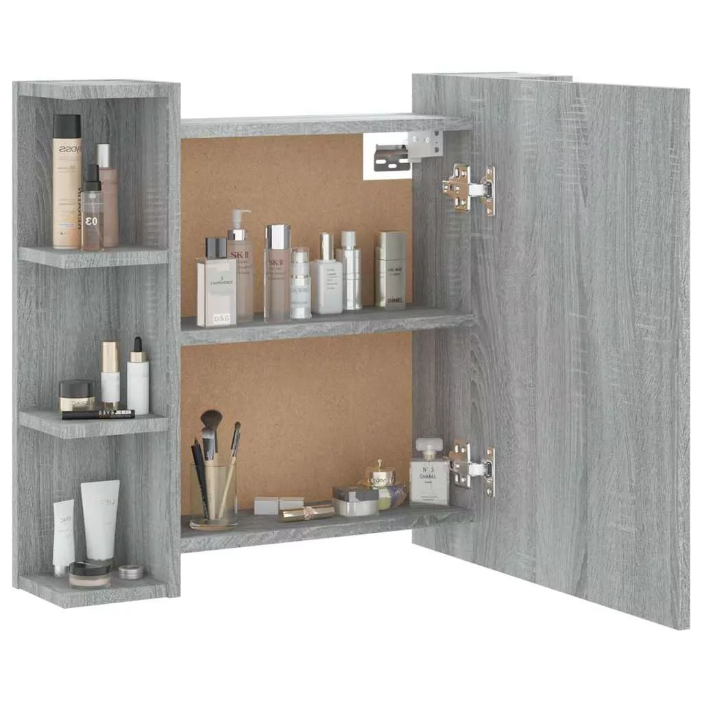 Tárolja fontos sminkkellékeit rendezetten ebben a divatos LED-es tükrös szekrényben! Tartós anyag: A szerelt fa kivételes minőségű, sima felületű, szilárd, stabil, és ellenáll a nedvességnek. A szerelt fából készült LED-es tükrös szekrény könnyen tisztítható.Hasznos tükör: A gyönyörű tükör segít a sminkelésben, és elegánsabbá teszi a tükrös fürdőszobaszekrényt.LED-világítás: A faliszekrény USB-s LED-izzókkal van ellátva a kényelmes használat érdekében.Bőséges tárolóhely: Ez a tükrös szekrény rekeszekkel rendelkezik, amelyekben rendezetten tárolhatja különféle kellékei. Megjegyzés:Az egyszerű összeszerelés érdekében minden termékhez mellékelünk összeszerelési útmutatót.A falon belüli csavar(ok) és dugó(k) nem alaptartozékok. Keressen és használjon a falának megfelelő csavar(oka)t és dugó(ka)t. Ha bizonytalan, kérje szakember tanácsát. Gondosan olvassa el és kövesse a használati utasítás minden lépését. Ne használja ezt az elemet, ha valamelyik alkatrésze eltört, elszakadt vagy hiányzik. Ez a termék DC 5V-ról működik, de a tanúsított 5V-os USB-tápforrást nem tartalmazza. A magasabb feszültség túlmelegedést okozhat, ami a készülék károsodását, valamint a túlmelegedés és a tűz esetleges kockázatát okozhatja.