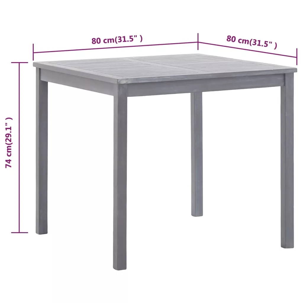 szürke tömör akácfa kerti asztal 80 x 80 x 74 cm