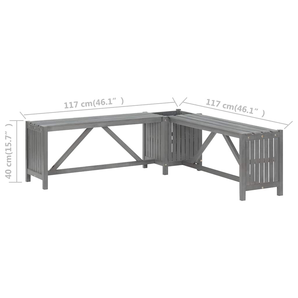 szürke tömör akácfa kerti sarokpad ültetővel 117 cm