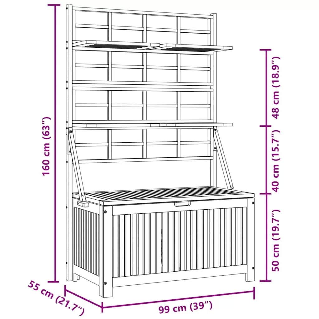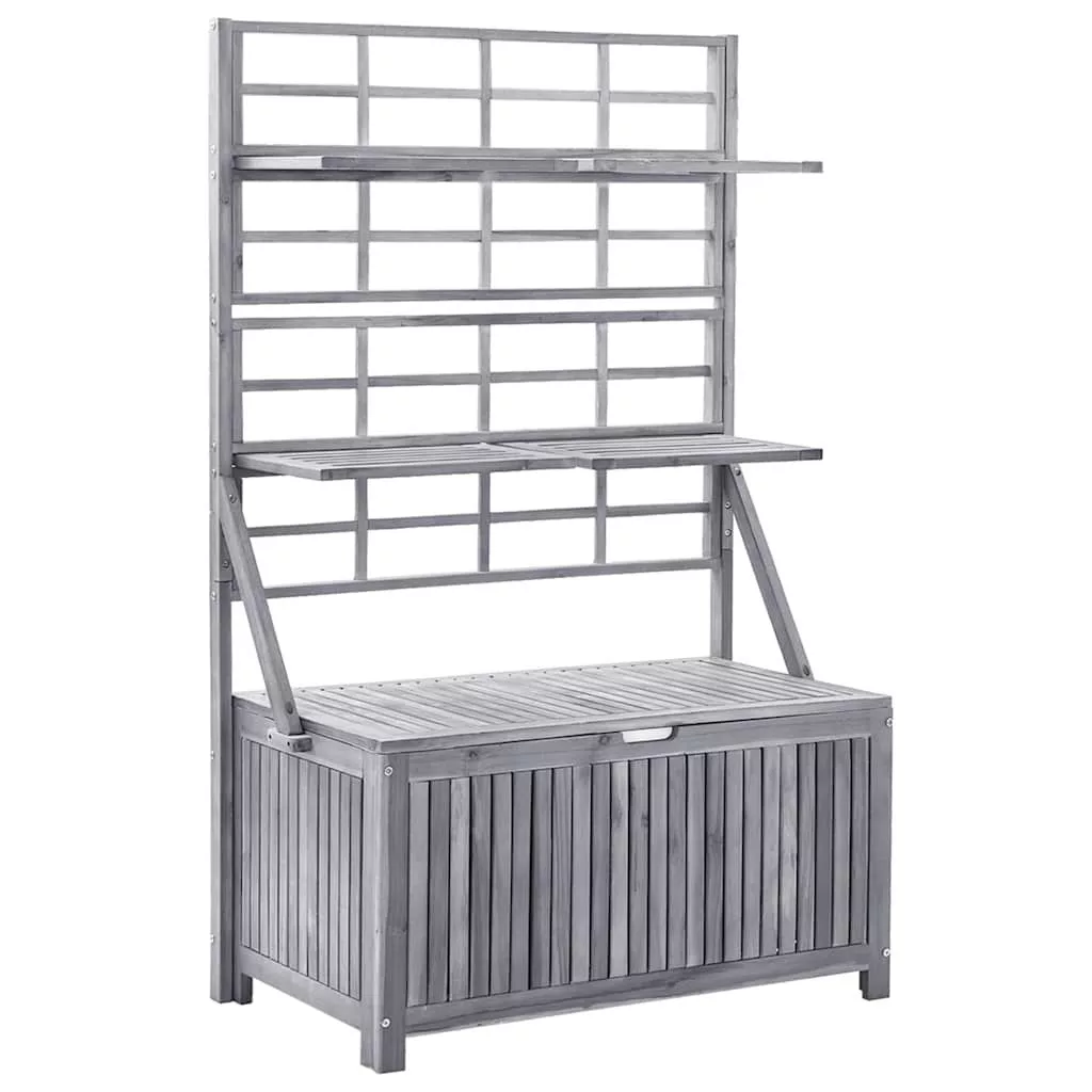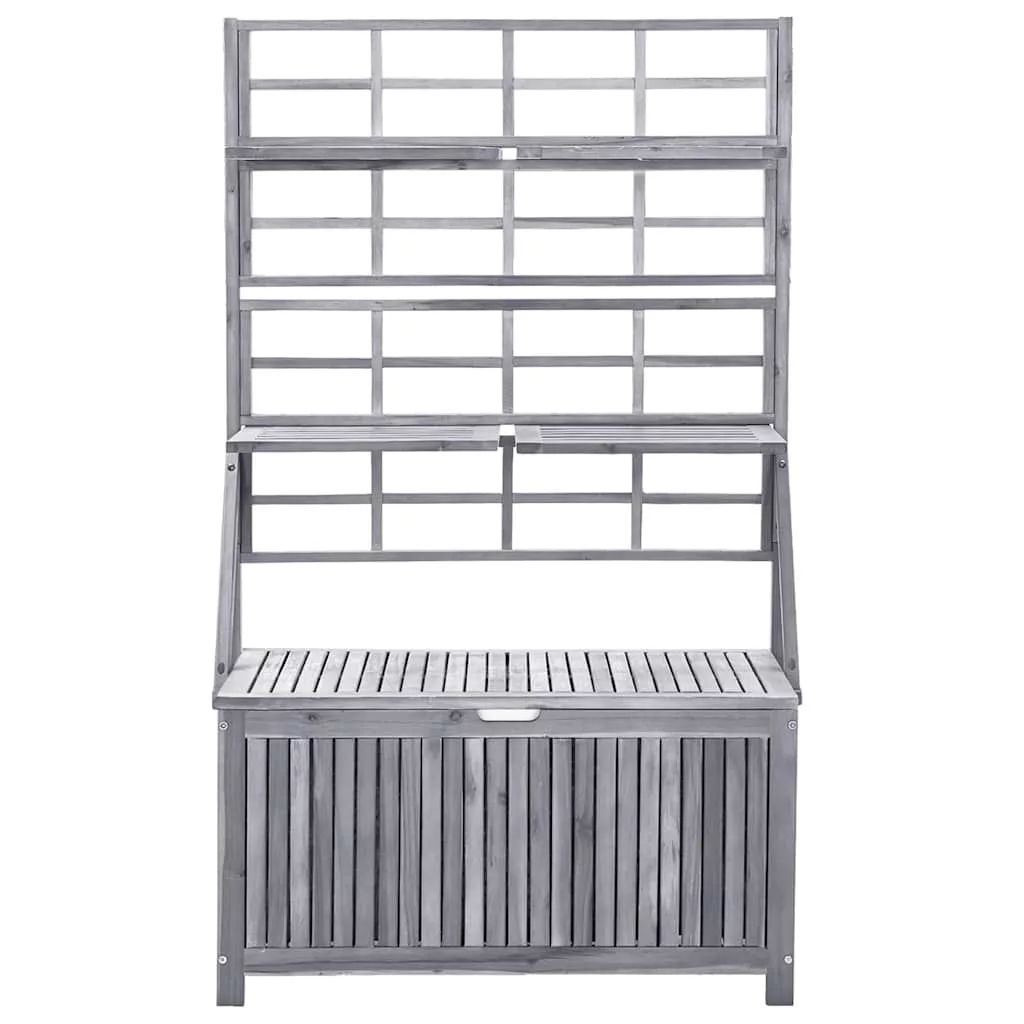 szürke tömör akácfa rácsos tárolóláda 99 x 55 x 160 cm