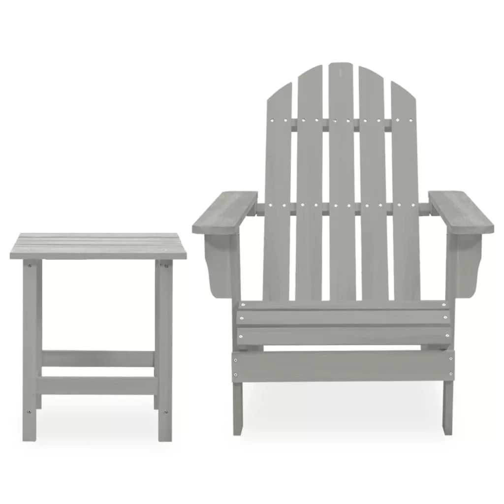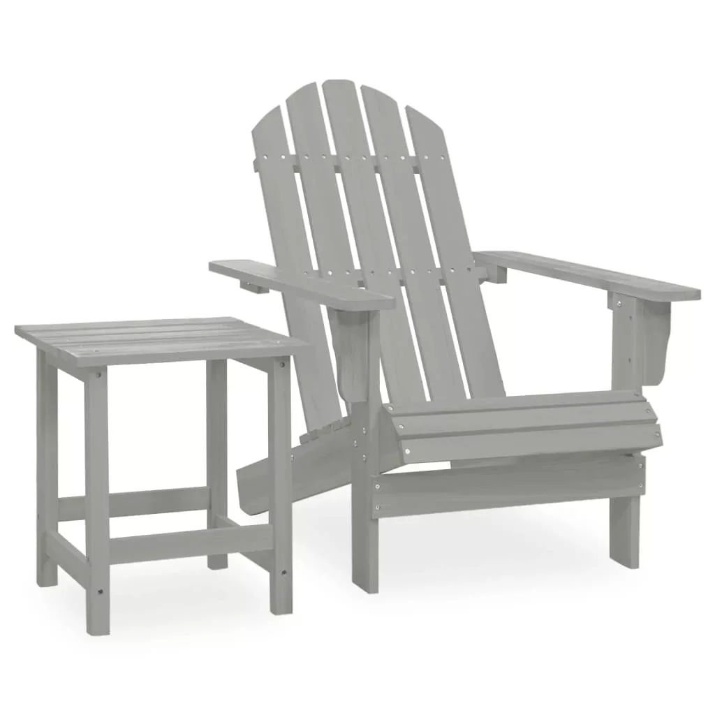 szürke tömör fenyőfa kerti adirondack szék asztallal