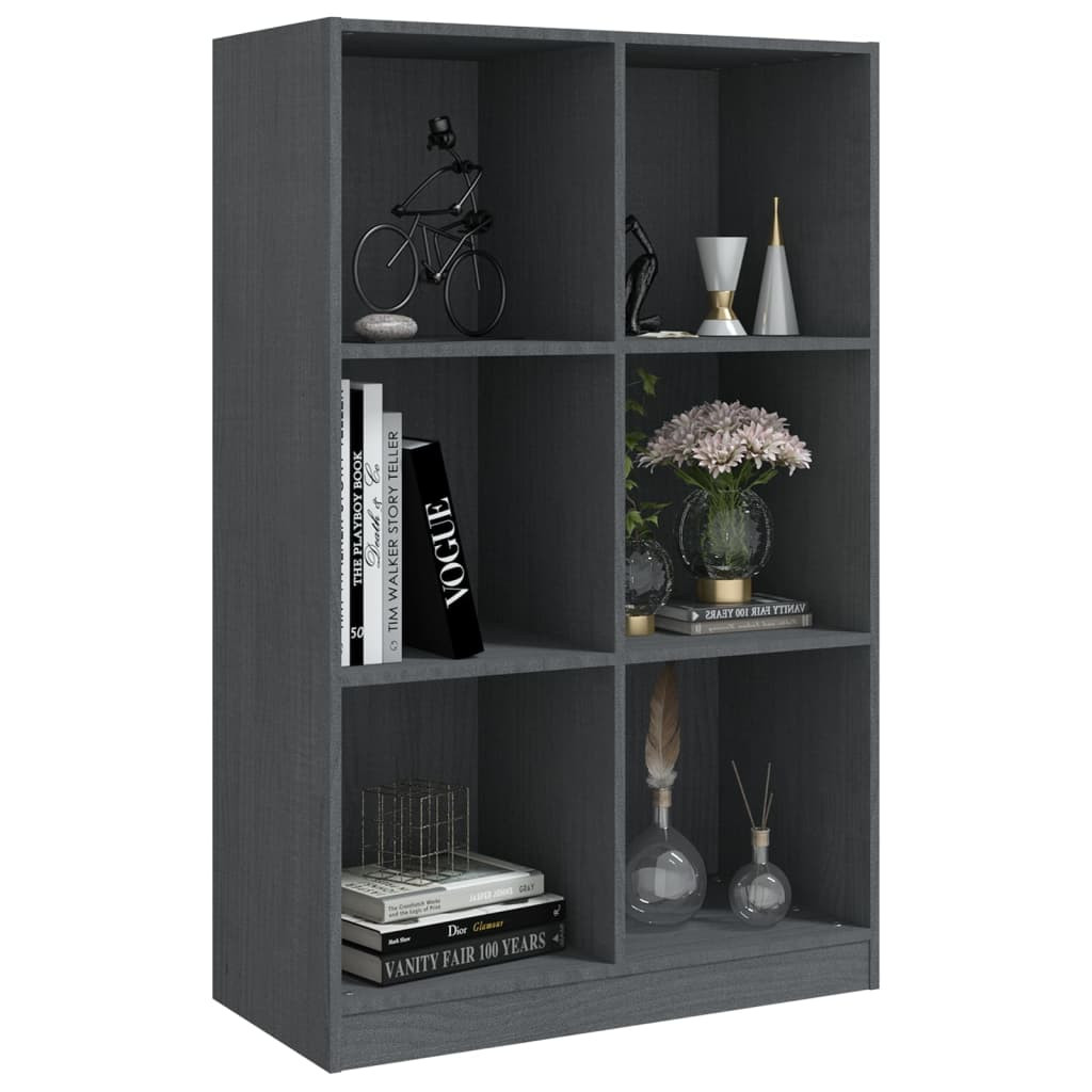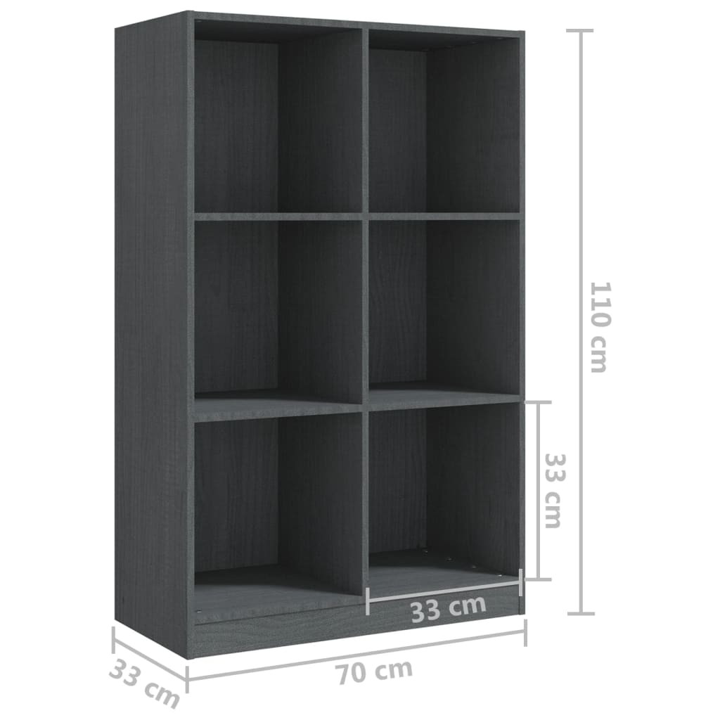 szürke tömör fenyőfa könyvszekrény 70 x 33 x 110 cm