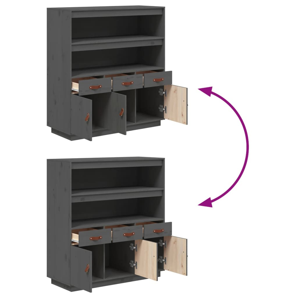 Ez a klasszikus fa magasszekrény ideális kiegészítője lesz hálószobájának, nappalijának vagy irodájának, és maradandó benyomást kelt! Erős anyag: A tömör fenyőfa egy gyönyörű természetes anyag. A fenyőfa egyenes erezetű, a csomók adják az anyag jellegzetes, rusztikus megjelenését.Bőséges tárolóhely: A tálalószekrény 2 nyitott polccal, 3 ajtóval és 3 fiókkal rendelkezik, amelyek bőséges tárolóhelyet biztosítanak a különféle mindennapi kellékek jól szervezett és könnyen elérhető helyen tartásához.Kijelző funkció: A kisszekrény masszív teteje tökéletes dekorációs tárgyai, képkeretei és cserepes növényei megjelenítésére. Figyelem:A dőlés megakadályozása érdekében a terméket a mellékelt tartóelem segítségével rögzíteni kell a falhoz. Megjegyzés:Az egyszerű összeszerelés érdekében minden termékhez mellékelünk összeszerelési útmutatót.