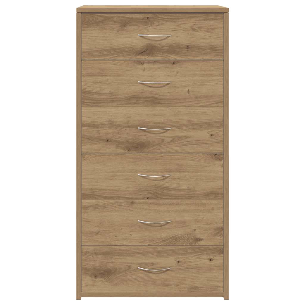 Ez a minimalista stílusú tálalószekrény otthona praktikus és igen dekoratív kiegészítője lesz. Stabil és tartós anyag: A szerelt fa tartós és stabil anyag sima felülettel, amely ellenáll a nedvességnek, a vetemedésnek és a hasadásnak, így megbízható választás különféle célokhoz.Bőséges tárolóhely: A tálalószekrény nagy tárolóhelyet kínál 6 fiókkal. Könyveit, multimédiás készülékeit és egyéb személyes tárgyait rendezve és elérhető helyen tarthatja.Megjelenítő funkció: Ennek a tárolószekrénynek az erős asztallapja ideális dekorációs tárgyak, képkeretek vagy cserepes növények megjelenítésére.Könnyen karbantartható: Sima felületének köszönhetően a fiók tálalószekrénye könnyen tisztítható nedves ruhával, és kevesebb karbantartást igényel. Figyelem:A felborulás elkerülése érdekében ezt a terméket a mellékelt fali rögzítőeszközzel kell használni.