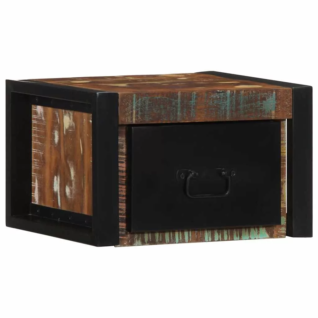 Dobja fel hálószobáját ezzel a falra szerelhető éjjeliszekrénnyel! Könnyedén kiegészíti otthona bármelyik bútorstílusát! Robusztus és stabil anyag: A tömör újrahasznosított fa újrafelhasznált faanyagokból áll, mint például teak, mangófa, fenyőfa és bükk. Ezeket az anyagokat régi épületekből, például gyárakból, fészerekből és csónakokból hasznosítják újra. A kopás jelei és a látható szemcseszerkezet minden darabnak saját történetét és egyedi megjelenést ad.Bőséges tárolóhely: Az éjjeliszekrény bőséges tárolóhelyet biztosít a magazinok, könyvek, poharak és más, az ágyban szükséges dolgok számára, így azok rendezettek és elérhető közelségben maradnak.Falra szerelhető kialakítás: Ez a lebegő éjjeliszekrény falra szerelhető, így extra tárolóhelyet biztosít. Ezáltal maximalizálhatja a padlóterületet, és tisztán tarthatja a környezetét.Praktikus fogantyú: A szekrény fogantyúja kényelmes fogást biztosít, így könnyedén nyithatja és zárhatja a szekrényt, miközben extra szépséget ad hozzá. Jó tudni:Minden termék egyedi, a szín és az erezet változik. A kiszállítás véletlenszerűen történik, biztosítva terméke exkluzivitását és egyediségét.