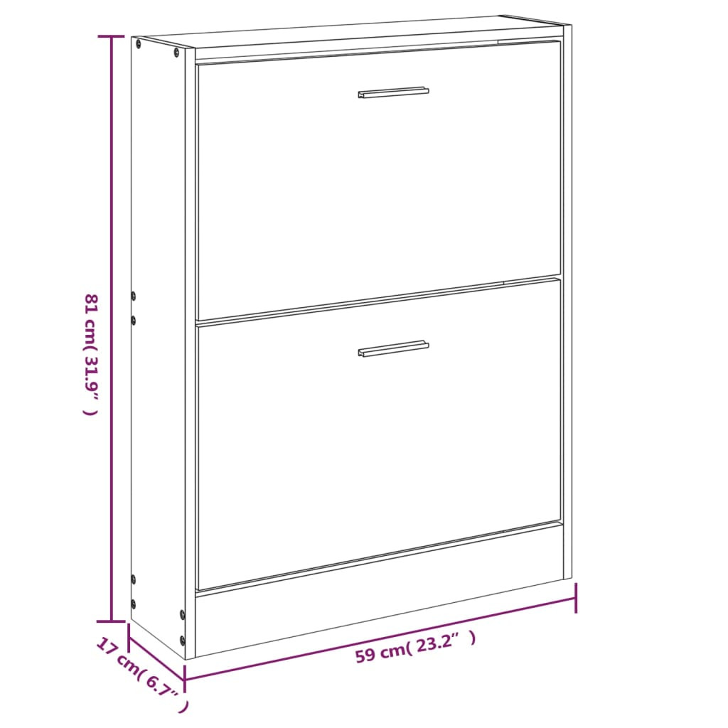 Ez a cipőszekrény modern és stílusos kialakításával kiváló bútordarab cipői rendezett tárolására. Alkalmas bejárathoz, előszobába, nappaliba, hálószobába és más olyan helyekre, ahol csak szeretné. Tartós anyag: A mesterséges fa kivételes minőségű, sima felületű, emellett szilárdsággal, stabilitással és nedvességállósággal rendelkezik.Bőséges tárolóhely: Ez a cipőtartó 2 fiókkal rendelkezik, így bőséges helyet biztosít cipőinek kézközelben és rendezetten tartásához.Lehúzható fiókos kialakítás: Lehúzható fiókos kialakításának köszönhetően ez a cipőtároló szekrény könnyen nyitható és zárható. Megjegyzés:Minden termékhez tartozik egy összeszerelési útmutató a dobozban a könnyű összeszerelés érdekében. Figyelmeztetés:A felborulás elkerülése érdekében a terméket a mellékelt fali rögzítőelemmel kell használni