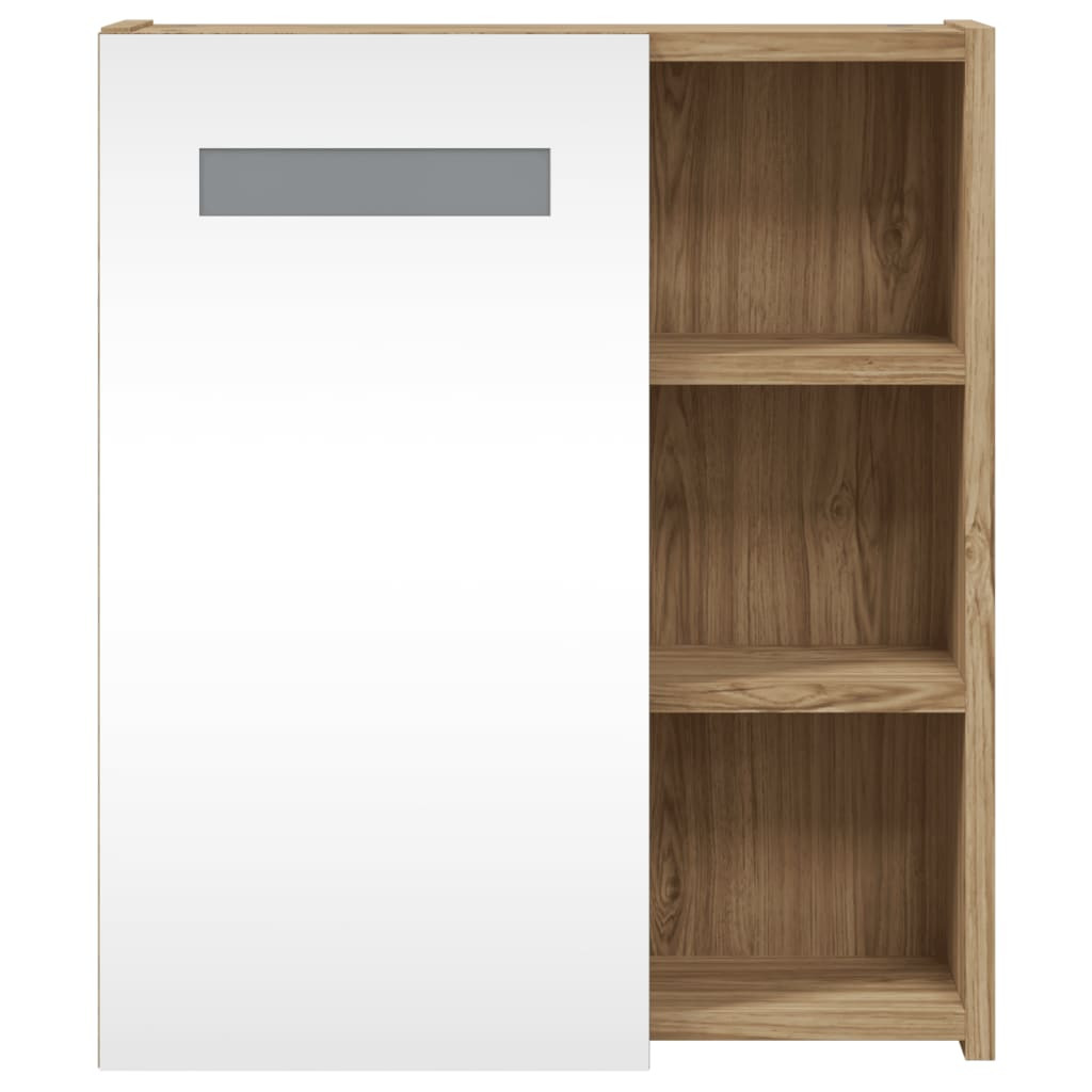 tölgyszínű tükrös fürdőszobaszekrény LED-del 45 x 13 x 52 cm