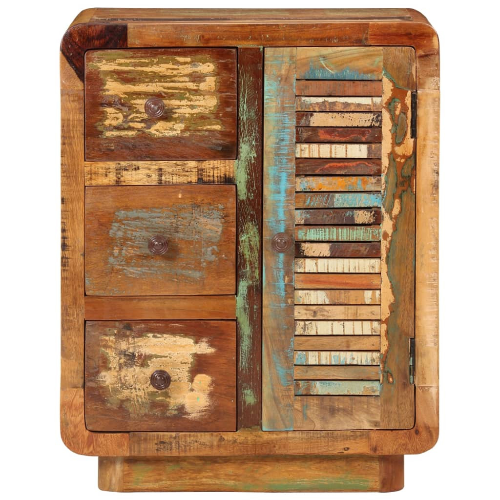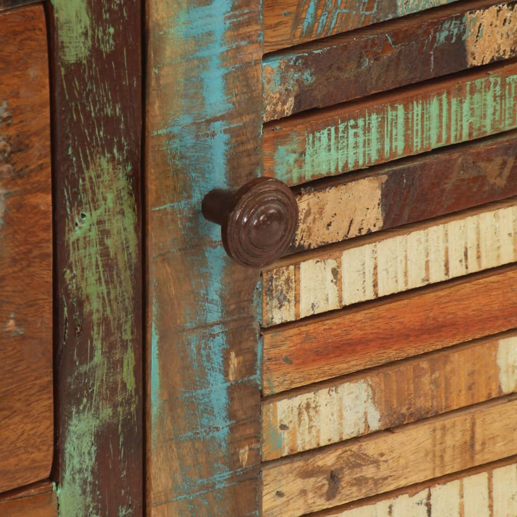 Ez az időtlen megjelenésű fa tálalószekrény otthona kiváló kiegészítője lehet. Tömör újrahasznosított fa: A tömör újrahasznosított fa újrafelhasznált faanyagokból áll, például tíkfából, mangófából, fenyőfából és bükkfából. Ezeket a faanyagokat régi épületekből, például gyárakból, fészerekből és hajókból hasznosítják újra. Mivel minden darab kézzel készült, a színek darabonként változhatnak. A tömör újrahasznosított fából készült szekrény tartós és gyönyörű.Bőséges tárolóhely: A 3 fiókkal és 2 rekesszel felszerelt tálalószekrény bőséges tárolóhelyet kínál különféle mindennapi holmijai elérhető közelségben történő, rendezett tárolásához.Bemutatófunkció: A szekrény teteje tökéletes dísztárgyak, fotóalbumok vagy kis növények elhelyezésére. Jó tudni: A szín és erezet darabonként változik, így minden darab egyedi. A kiszállítás véletlenszerűen történik, biztosítva terméke exkluzivitását és egyediségét. Figyelem:A felborulás elkerülése érdekében ezt a terméket a mellékelt fali rögzítőeszközzel kell használni.