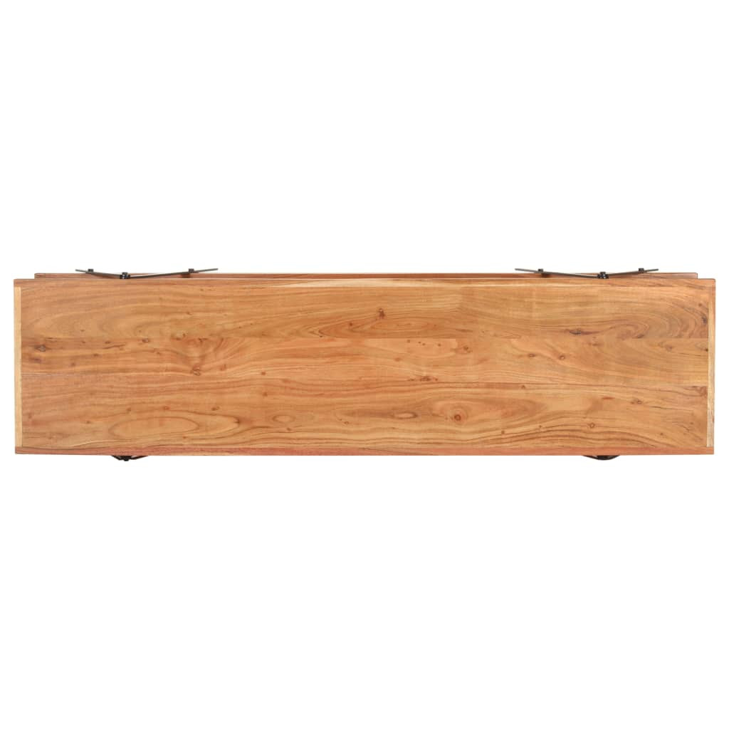 Ez a fa TV-szekrény a vintage stílust az eleganciával ötvözi, a tömör akácfa és a porszórt vasváz pedig egyszerre áraszt régies és ipari bájt. A TV-állvány tömör akácfából készült, amely egy sűrű erezetű keményfa. Ez a gyönyörű kialakítású alacsonyszekrény stabil, tartós és szemet gyönyörködtető. A tökéletes kivitelezésnek és a gyönyörű faerezetnek köszönhetően minden darab kissé különbözik a többitől. A hifi-szekrény 2 polccal rendelkezik, így bőséges helyet biztosít multimédiás készülékek, könyvek és különféle egyéb tárgyak tárolásához. A porszórt vasváz hozzájárul a masszív kialakításhoz, és növeli az asztal ipari báját! Figyelem: A szín és az erezet minden darab esetében eltérő lehet, így ezek a bútorok mind egyediek; a kiszállítás véletlenszerűen történik.