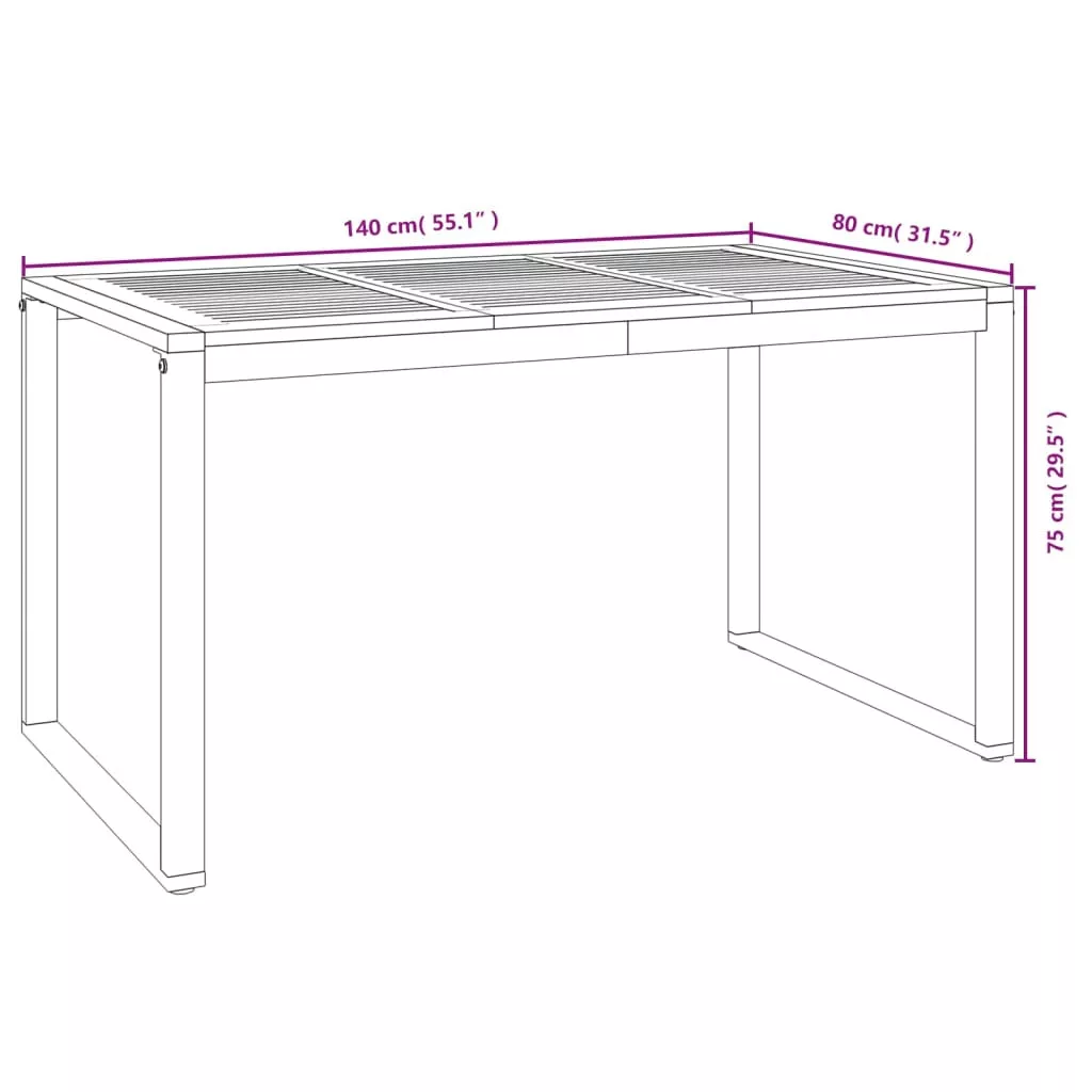 tömör akácfa kerti asztal U-alakú lábakkal 140 x 80 x 75 cm