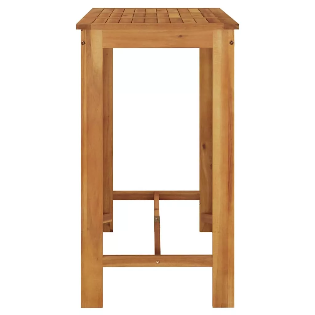 Kortyolgassa kedvenc borát vagy egyen egy jót ennél a fából készült kerti bárasztalnál ülve.Tartós anyag: A tömör akácfa egy gyönyörű és természetes anyag. Az akácfa egy trópusi keményfa, amely sűrű erezetű, masszív és tartós.Többféle funkció: Ez a letisztult bárasztal kül- és beltéri használatra egyaránt alkalmas. Akár étkezőasztalként is használható.Könnyen tisztítható felület: Az olajbevonatos faszerkezetnek köszönhetően a bisztróasztal nedves ruhával könnyen tisztítható. Megjegyzés:Az egyszerű összeszerelés érdekében minden termékhez mellékelünk összeszerelési útmutatót.Kerti bútora élettartamának meghosszabbítása érdekében javasoljuk, hogy védje vízálló takaróval.
