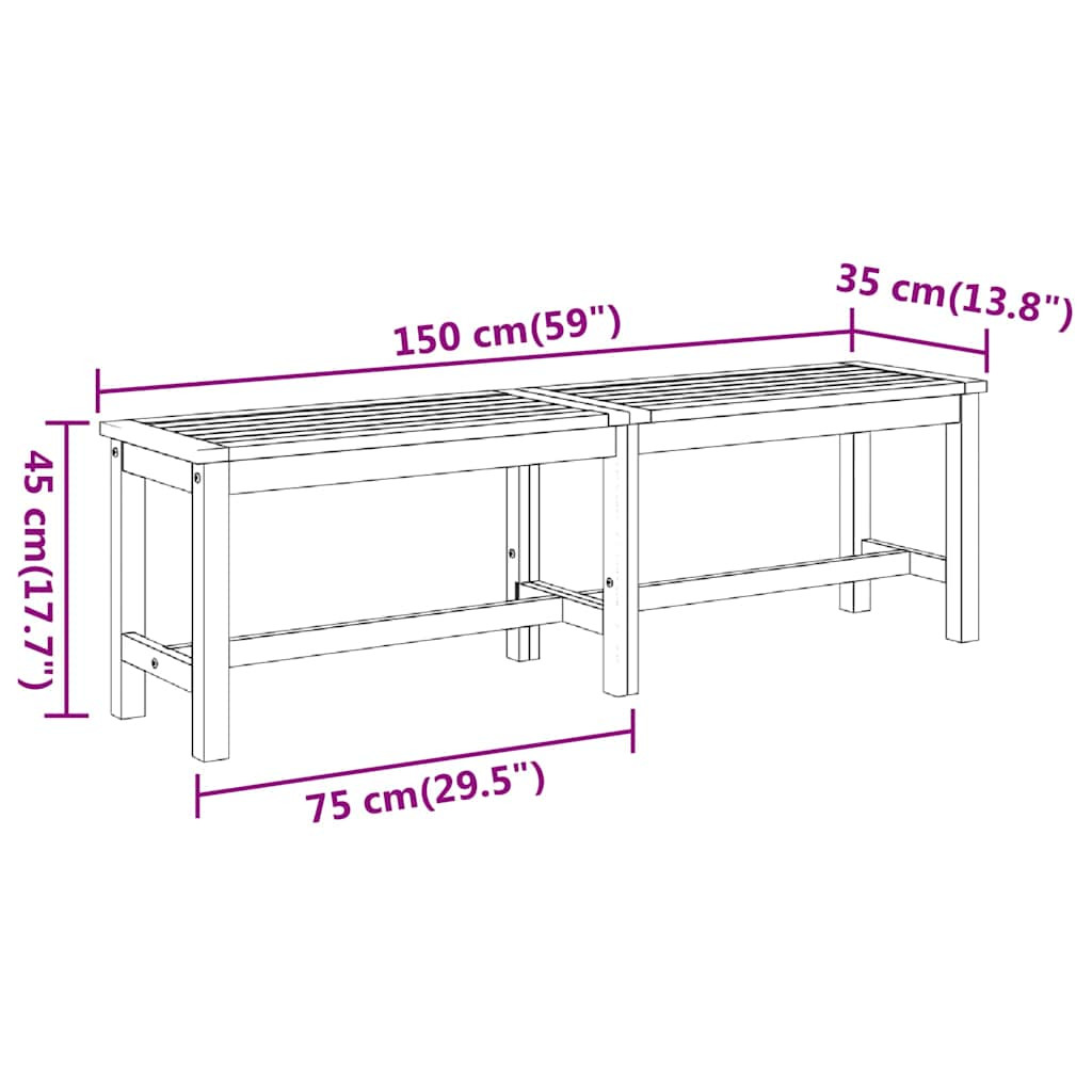 vidaXL tömör akácfa kerti pad 150 x 35 x 45 cm