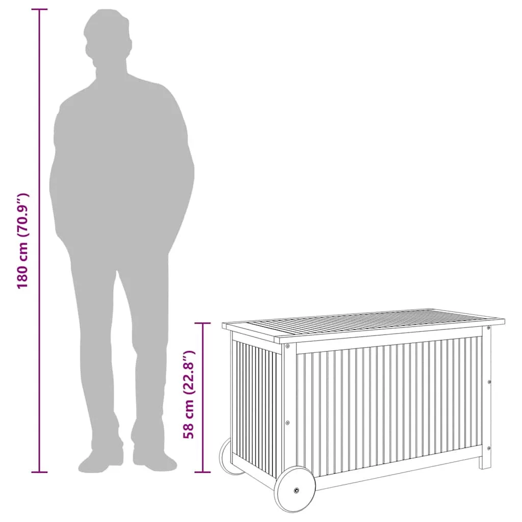 Ez a kerti, tömör fa tárolóláda bőséges tárolóhelyet biztosít a kerti bútorok párnáinak, kertészkedéshez használt szerszámoknak, és bármi másnak, amit elérhető közelségben szeretne tudni kültéri környezetében. Beltéren is használható. Tartós anyag: A tömör akácfa egy gyönyörű és természetes anyag. Az akácfa egy trópusi keményfa, amely sűrű erezetű, masszív és tartós.Bőséges tárolóhely: A tárolóhely megkönnyíti a holmik rendezett tárolását. Alkalmas ülőpárnák, hátpárnák, takarók, és egyebek tárolására.Praktikus kialakítás: A vízálló belső zsák megvédi a tárgyakat a nedvességtől és a portól. A kerti párnatároló láda kerekekkel és fogantyúval lett felszerelve, így könnyen mozgatható. Megjegyzés:Kerti bútora élettartamának meghosszabbítása érdekében javasoljuk, hogy védje vízálló takaróval.Az egyszerű összeszerelés érdekében minden termékhez mellékelünk összeszerelési útmutatót.