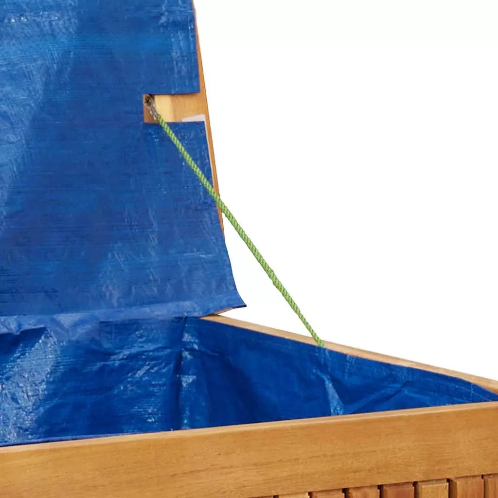 Ez a párnadoboz tökéletesen alkalmas arra, hogy a kültéri bútorok párnáit, kerti kellékeket, medencetörülközőket és egyéb tárgyakat rendszerezve és könnyen hozzáférhetően tartsa. Stabil és hosszú élettartamú váz: A tömör akácfa az erősségéről és tartósságáról ismert. Változatos színeinek és egyedi erezetmintájának köszönhetően vonzó megjelenésű. Jó stabilitásának és időjárás-állóságának köszönhetően ideális beltéri és kültéri bútorok készítéséhez.Tárolási funkció: A párnatartó alatt tárolóhely található, vízálló zsákkal felszerelve párnák, játékok és egyéb tárgyak tárolására. A belső táska biztonságosan rögzíthető az üléshez kampós rögzítőkkel, így biztosítva a stabilitást és megakadályozva az elmozdulást.Kiváló szellőzés: A kerti párnatároló doboz nyitott szerkezetű, lécekkel lett kialakítva, amelyek optimális szellőzést biztosítanak.Praktikus fedél: A kültéri ládák fedelekkel lettek ellátva, melyek nem csupán a portól óvja tartalmukat, hanem a biztonságot is növelik.Stílusos dizájn: A fa textúrájú kialakítása miatt ez a kerti tárolóláda időtlen megjelenéssel bír, bármilyen dekorációba tökéletesen illeszkedve. Jó tudni:A kültéri bútor szépségének megőrzése érdekében javasoljuk, hogy vízálló huzattal fedje be.