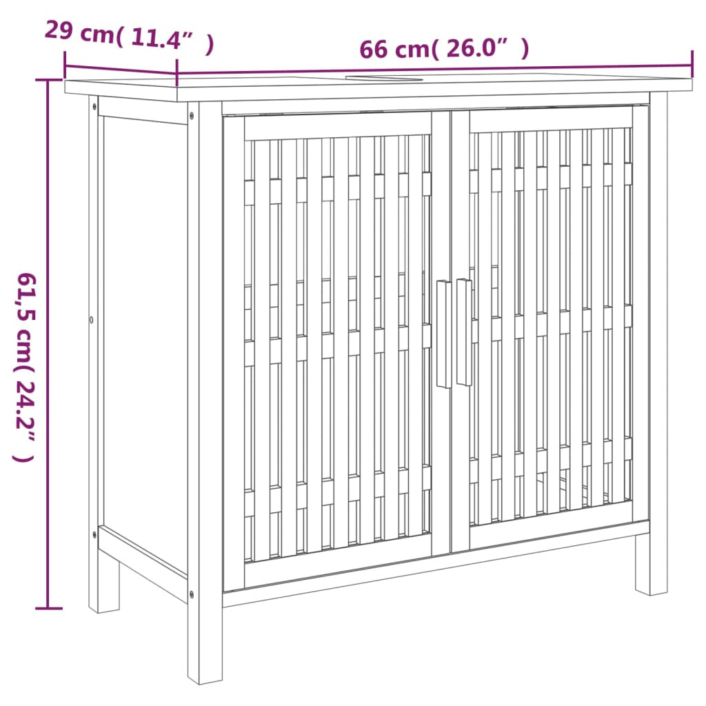 Ez a tágas tárolóhellyel rendelkező, fából készült fürdőszobai mosdószekrény bármely fürdőszoba vagy mosdó elegáns és időtlen kiegészítője lesz. Tömör diófa: A tömör diófa sűrű és robusztus fa, mely rendkívül ellenálló a kopással szemben, valamint jellegzetes színéről és vonzó erezetmintájáról híres.Bőséges tárolóhely: A mosdó alatti szekrény bőséges tárolóhelyet biztosít a fürdőszobai kellékek rendezett elhelyezéséhez.Praktikus kialakítás: A fürdőszobai mosdószekrény teteje ideális a mosdókagyló elhelyezésére.Rusztikus stílus: Ez a fürdőszobaszekrény egyedi stílust visz otthonába! A vidékies stílus tökéletes egyensúlyba hozza a formát és a stílust, miközben rusztikus és modern hangulatot kölcsönöz. Megjegyzés:Az egyszerű összeszerelés érdekében minden termékhez mellékelünk összeszerelési útmutatót. Figyelem:A dőlés megakadályozása érdekében a terméket a mellékelt tartóelem segítségével rögzíteni kell a falhoz.
