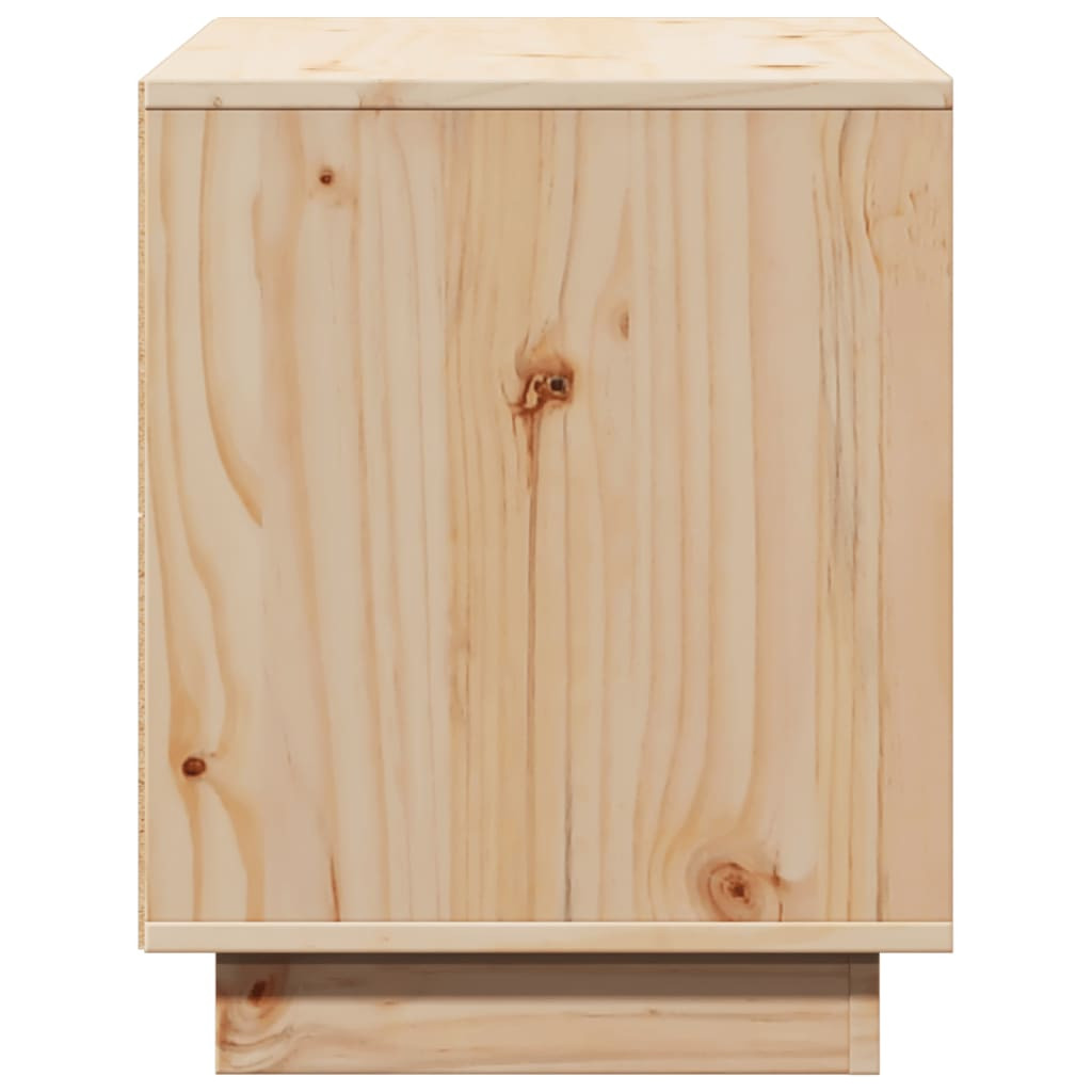 Ez a divatos tömör fa TV-szekrény letisztult és elegáns kialakítású, így otthona dekoratív és praktikus kiegészítője lesz. Tömör fenyőfa: A tömör fenyőfa egy gyönyörű természetes anyag. A fenyőfa erezete egyenes, a csomók adják az anyag jellegzetes, rusztikus megjelenését.Bőséges tárolóhely: Ez a két rekesszel TV-szekrény elegendő helyet kínál alapvető kellékei kézközelben történő rendezett tárolásához.Bemutatófunkció: A masszív lap ideális dísztárgyak, képkeretek és cserepes növények elhelyezésére.Rugalmas ajtófelszerelés: A rekesz ajtaja személyes szokásainak és kényelmének megfelelően bal vagy jobb oldalra is felszerelhető.