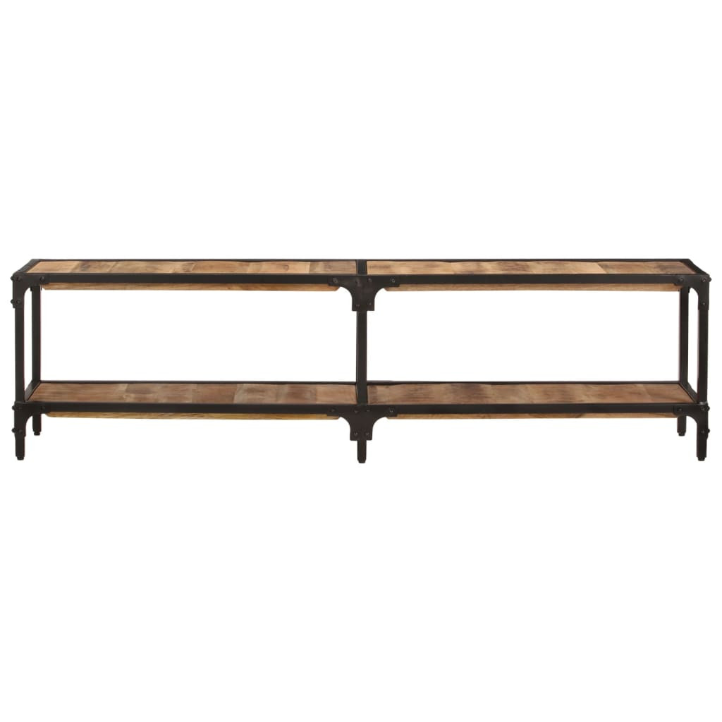 Ez az egyszerű, mégis antik-stílusú fa TV-szekrény vintage bájt áraszt. Otthona szemet gyönyörködtető kiegészítője lesz. Tömör mangófa: Ez a TV-állvány tömör mangófából, egy sűrű erezetű keményfából készült. A tömör mangófa nemcsak erős, hogy elbírja a rá nehezedő súlyt, de időtálló is.Porszórt vas: A TV-szekrény porszórt vasváza extra stabilitást biztosít.Tárolópolc: A médiaszekrény polca bőséges helyet nyújt különféle kellékek rendezett és kézközelben történő tárolásához. Megjegyzés:A színe és erezete darabonként változhat, így minden bútordarab egyedi, és kissé eltér a többitől. A kiszállítás véletlenszerűen történik, biztosítva terméke exkluzivitását és egyediségét.